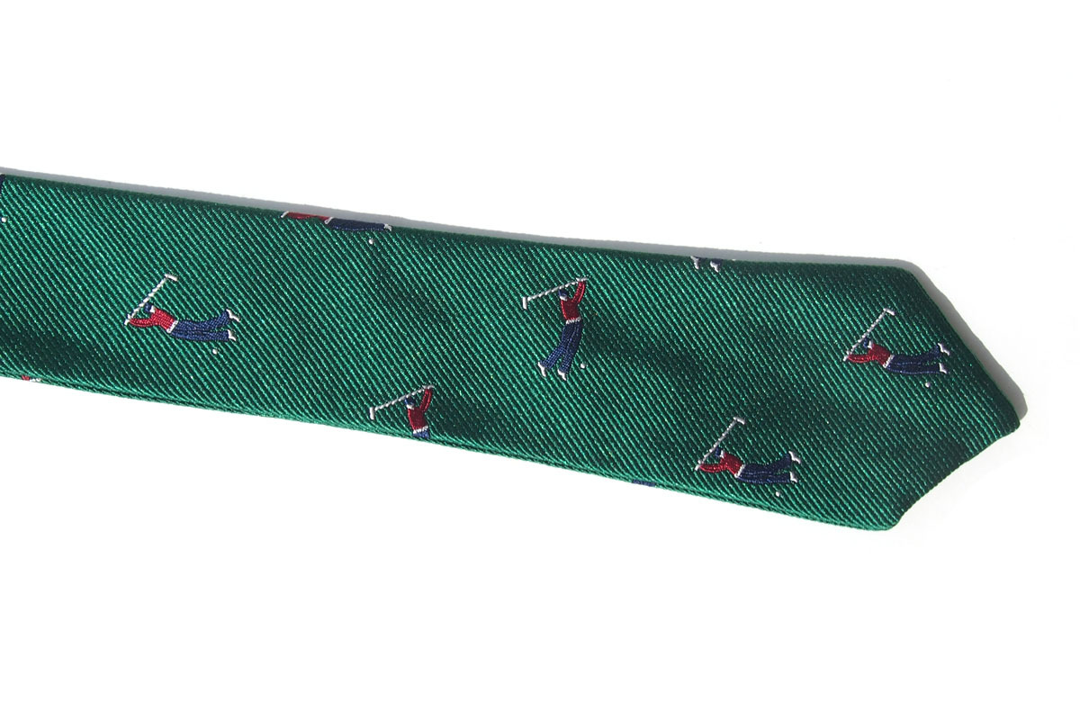 ゴルフを楽しむ紳士の姿が織り込まれた柄は、クラシックな装いにユーモアを添えてくれます。