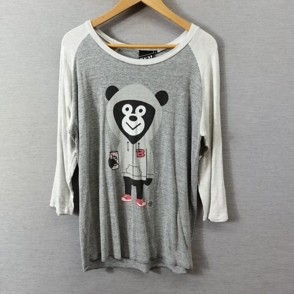 【状態】C(全体的に毛羽立ちや毛玉、首タグに汚れ、プリント割れ有り※画像参照)