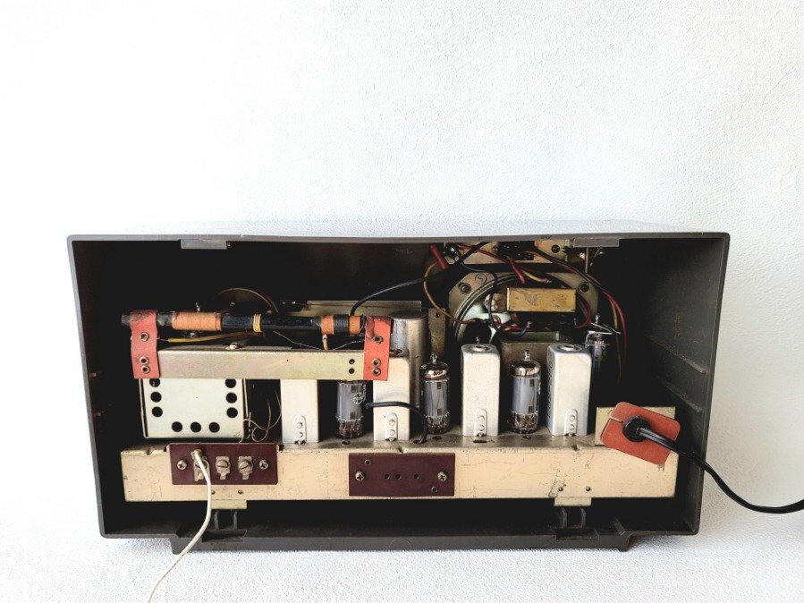 商品説明 昭和レトロな3バンドの真空管ラジオでコレクションにおすすめです。 詳細 ●サイズ:奥行16.5cm、幅31.5cm、高さ17cm ●動 作:動作確認済み ●ランク:ヴィンテージランク ●コンディション:上部や前面パネル、後方内部など全体的に傷、汚れがあります。 |