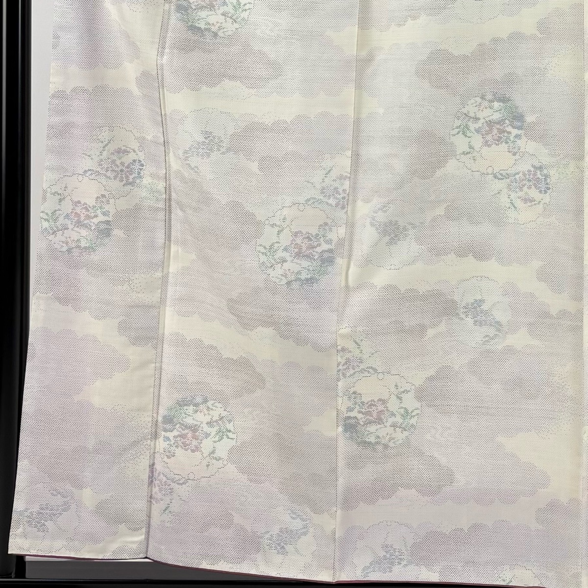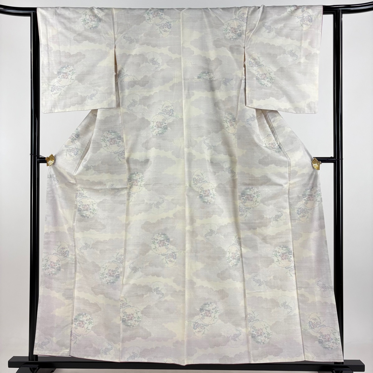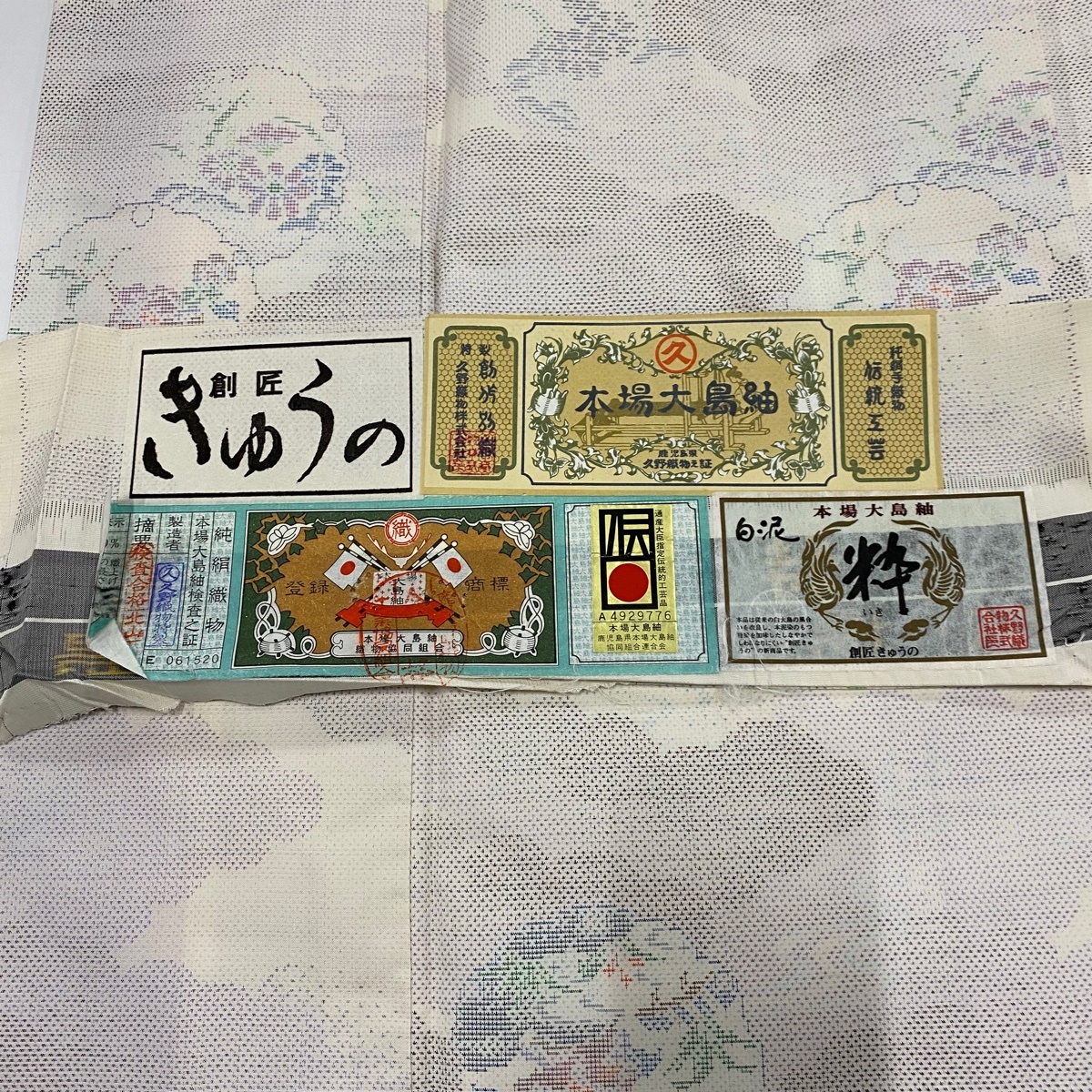 | 大島紬 名品 証紙 やまと 雪輪 草花 クリーム 袷 身丈158 裄丈62.5 S 正絹 【中古】 |