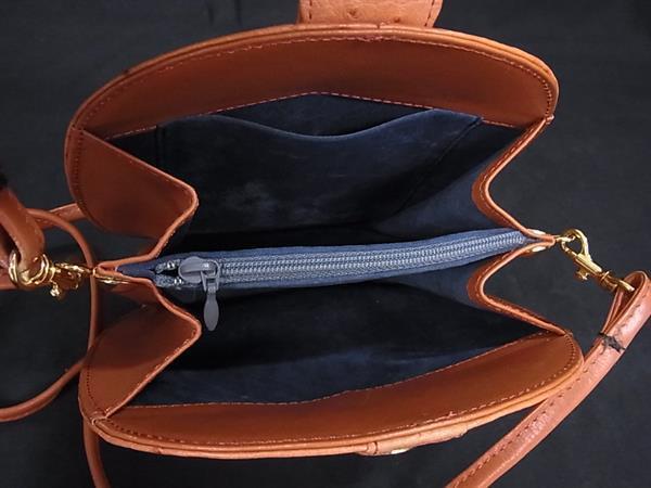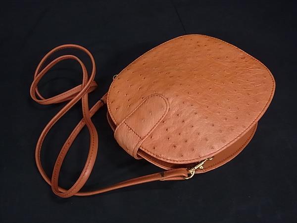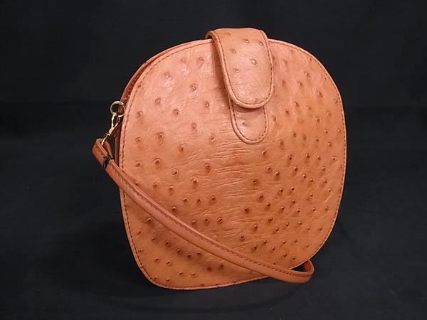 1円 ■極上■本物■極美品■ オーストリッチ クロスボディ ショルダーバッグ 斜め掛け レディース オレンジ系 BQ1473