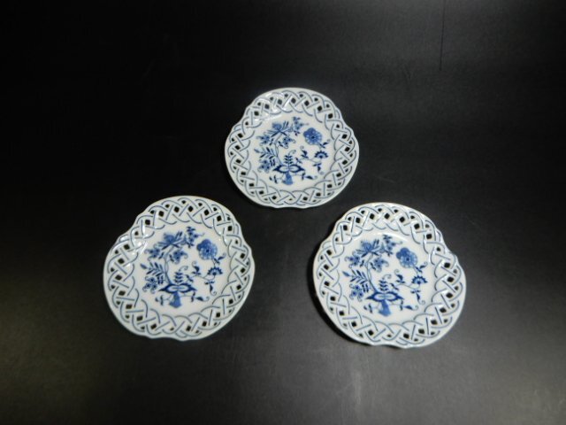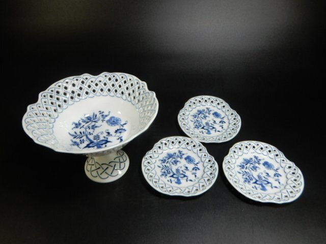 Blue Danube ブルーダニューブ ブルーオニオン 透かし フルーツ入れ 小皿(×3) 4点セット コレクション A-280