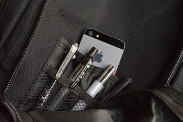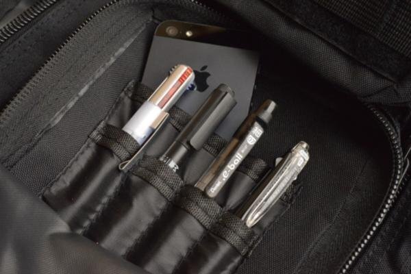 前面ジッパーポケット×1 ダブルジッパー式(オープンポケット×1、ペンさし×4)