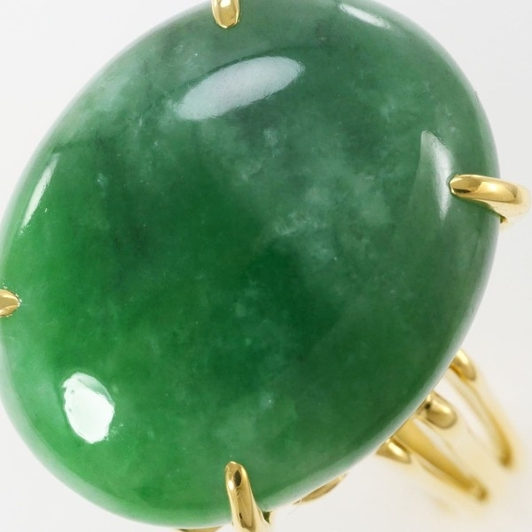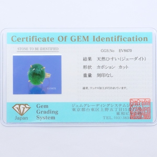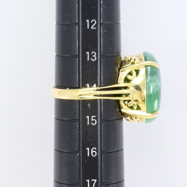 | K18YG リング 指輪 14号 ヒスイ カード鑑別書 総重量約7.9g 中古 美品 送料無料 | |