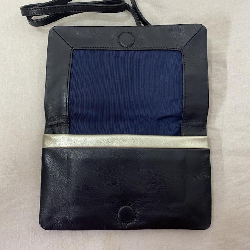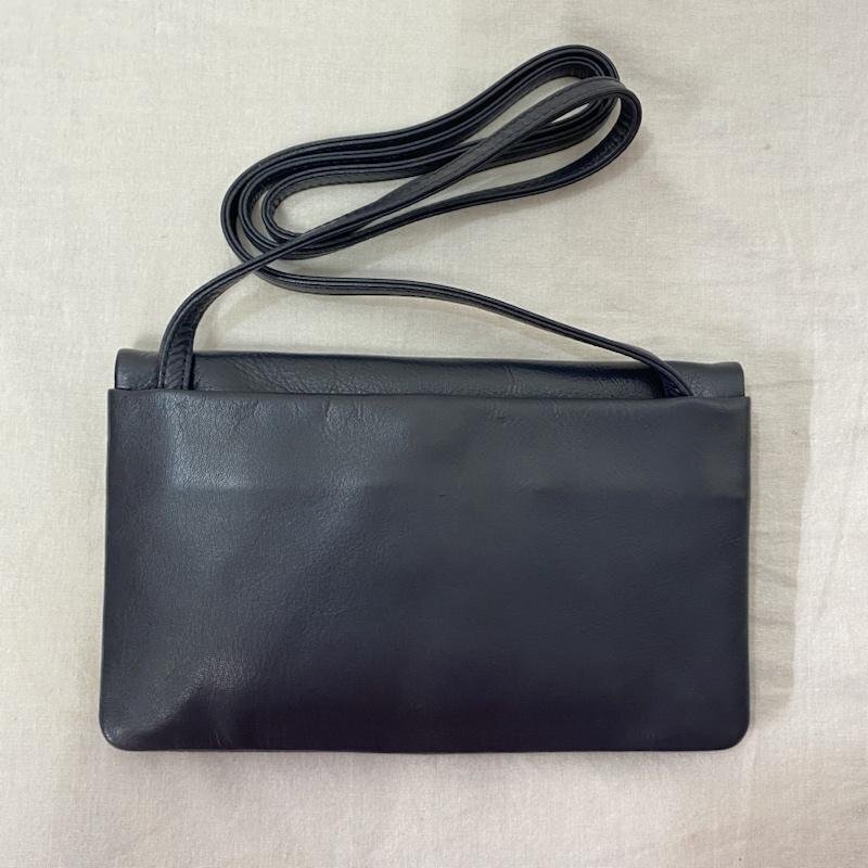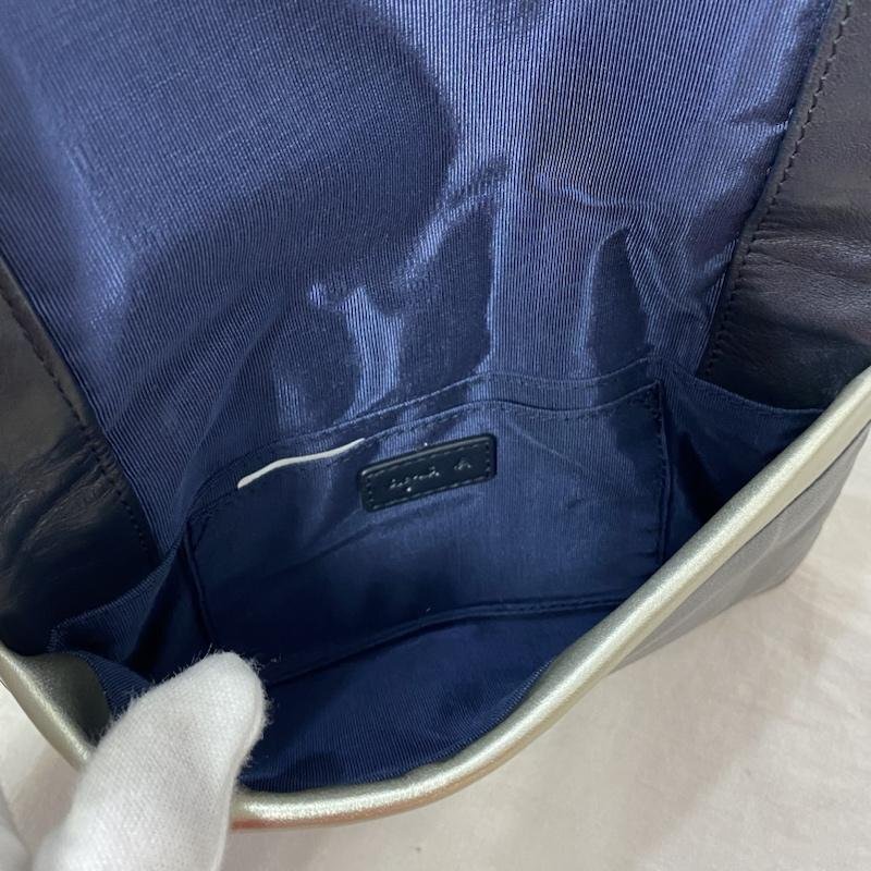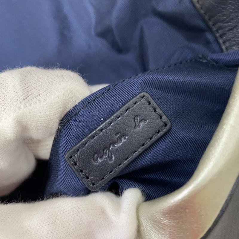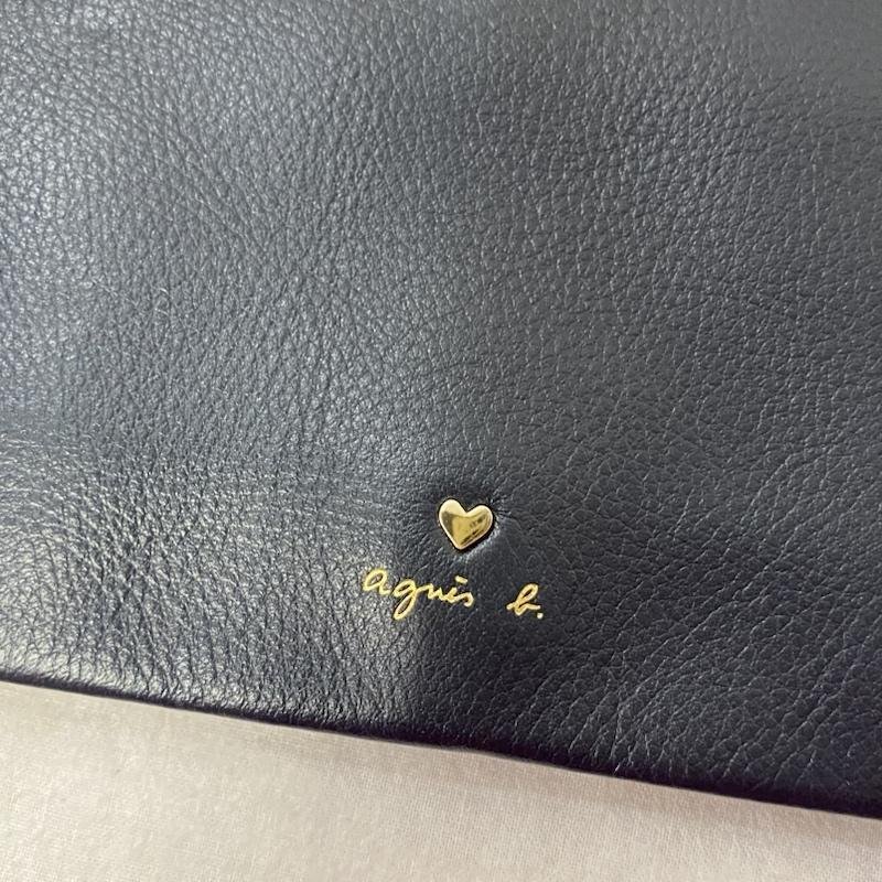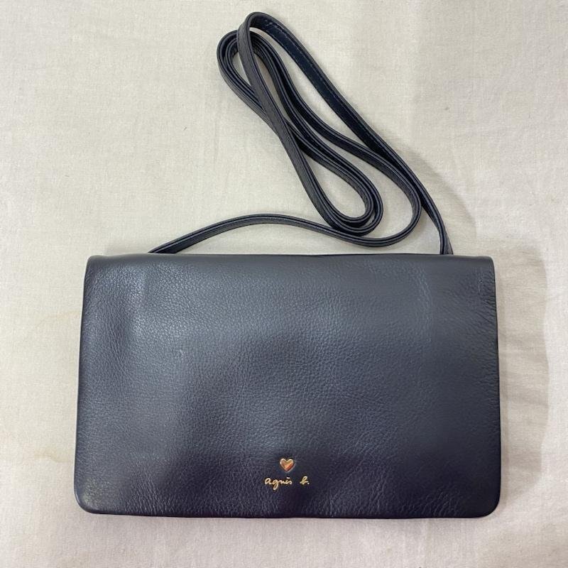 アニエス・ベー LEATHER BAG レザーショルダーバッグ ハートスタッズ ロゴ ネイビー 表記無し