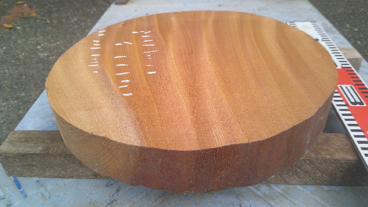 丸盆、菓子器、椀、鉢、皿などの木取りです。