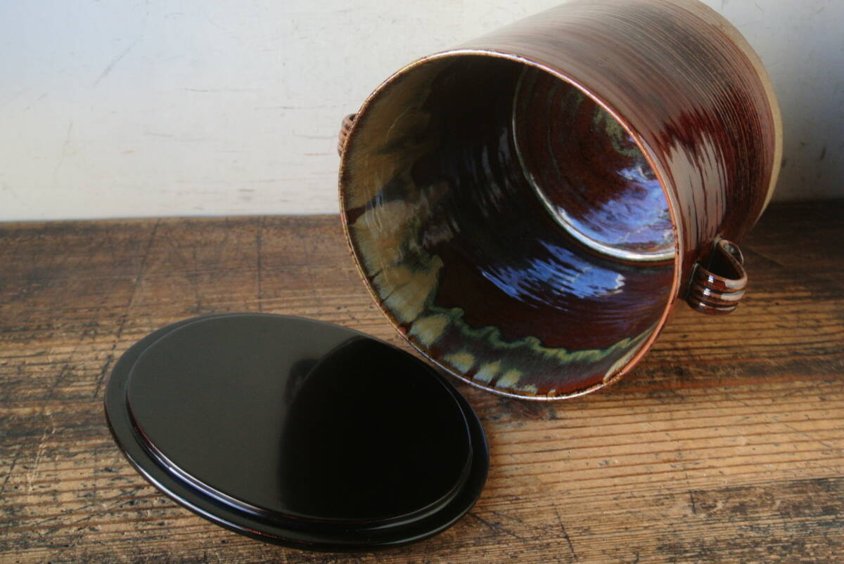 鬼丸雪山 高取耳付水指 塗蓋 共箱 本物保証