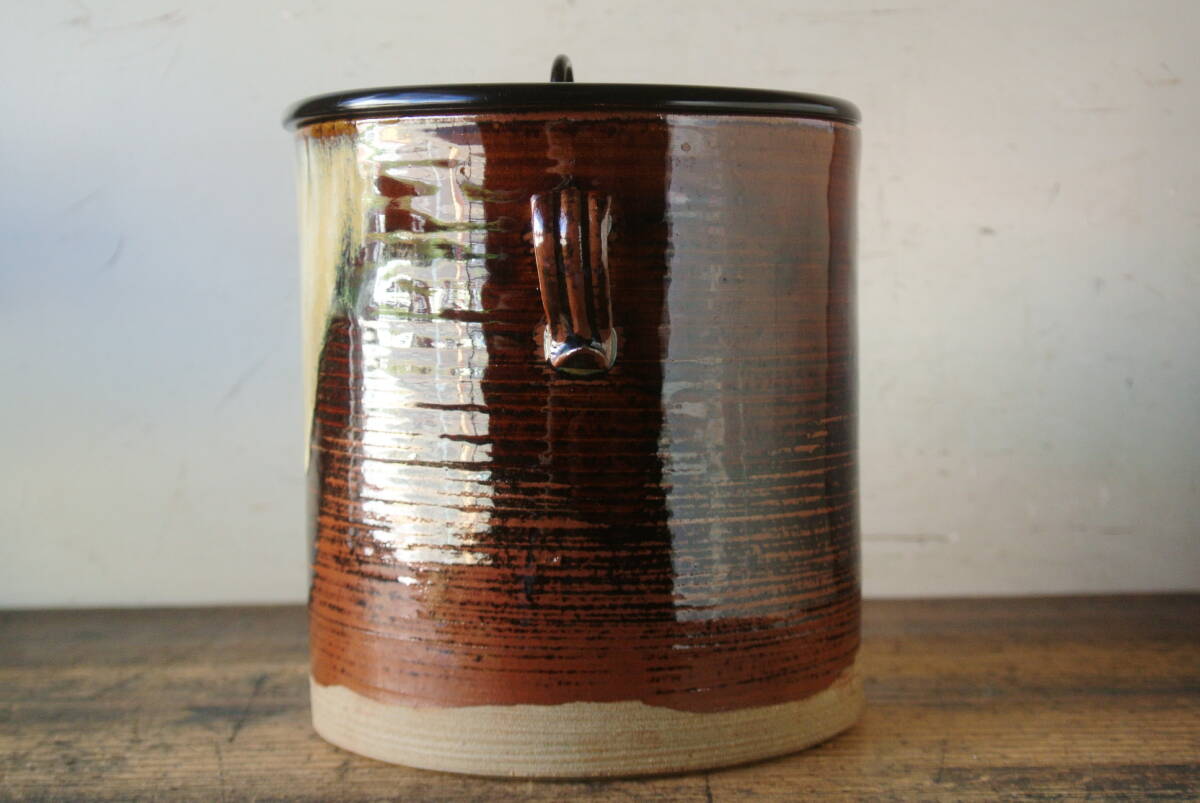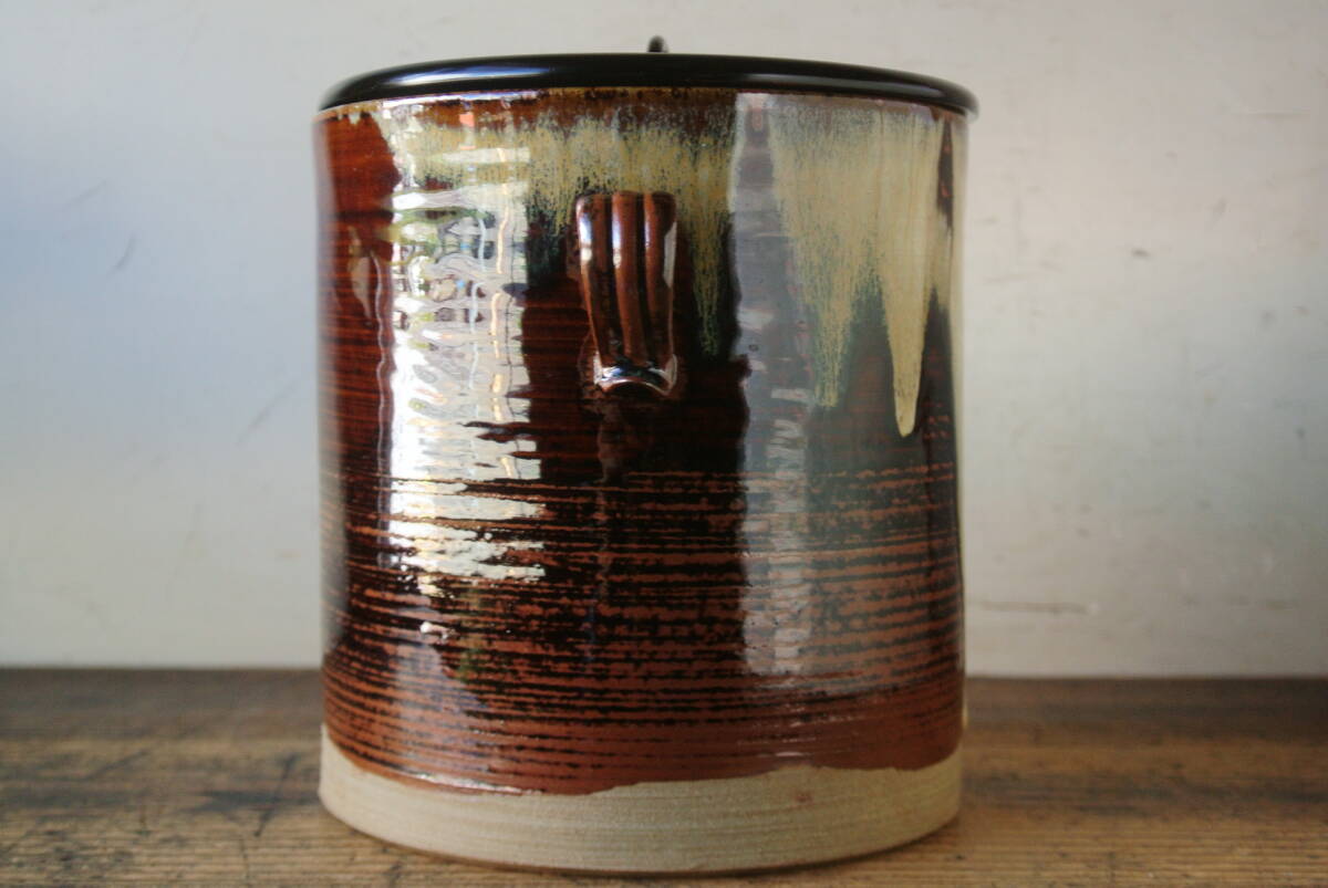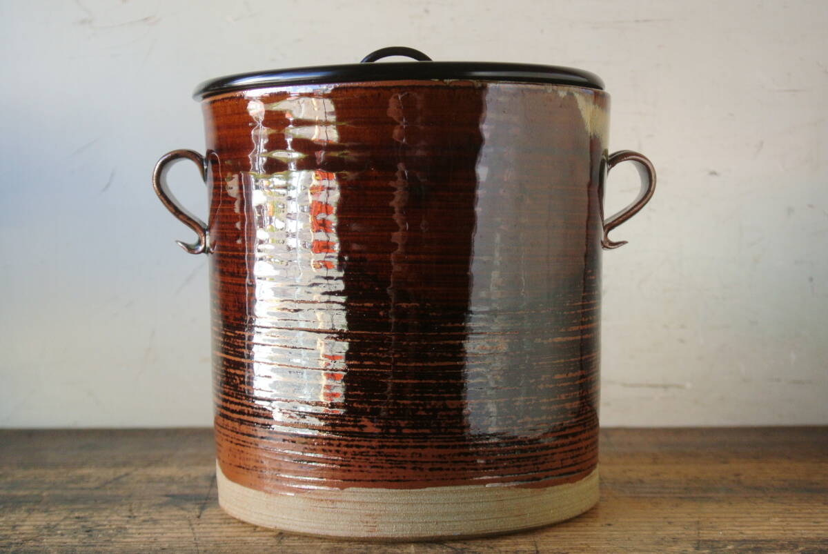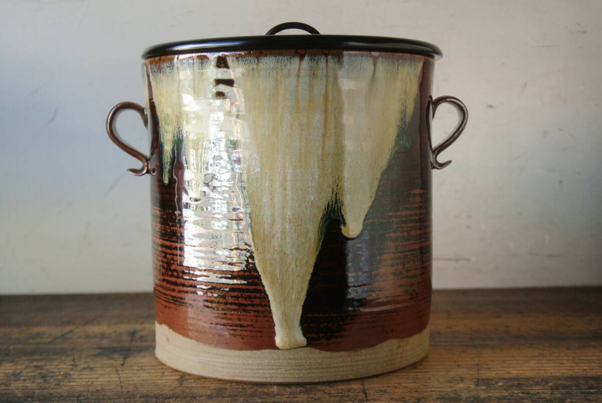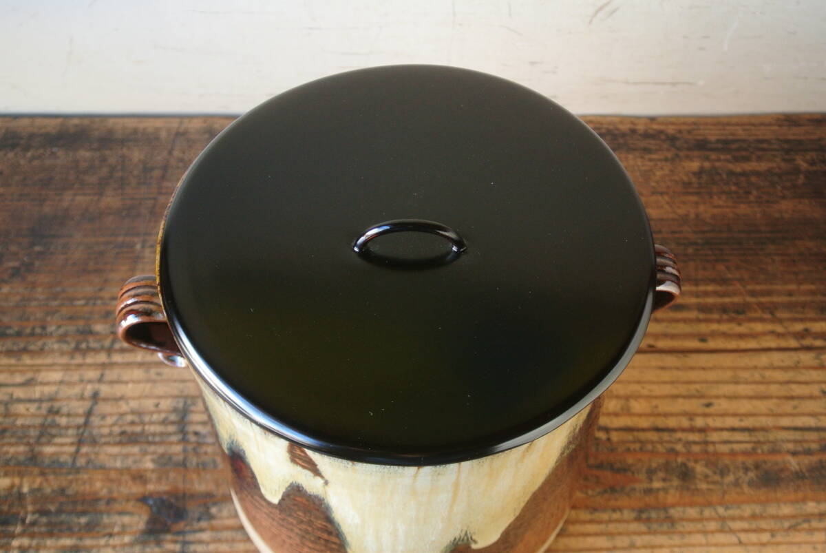 鬼丸雪山 高取耳付水指 塗蓋 共箱 本物保証