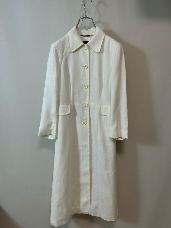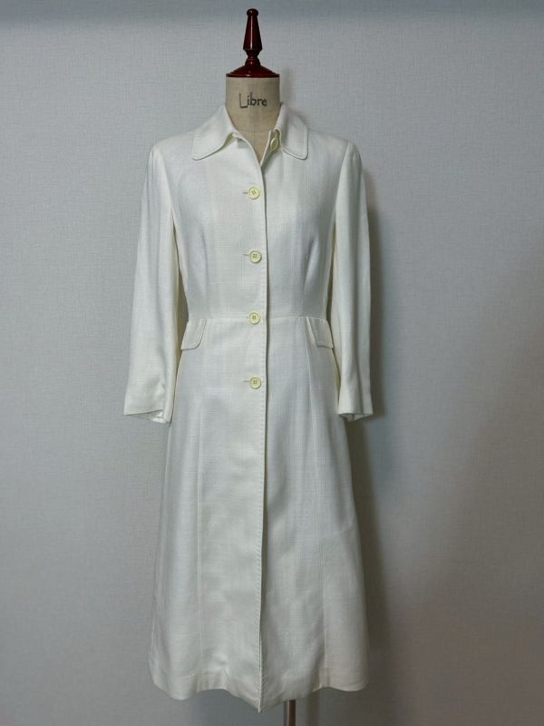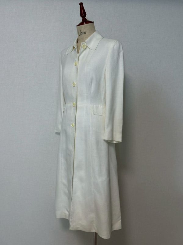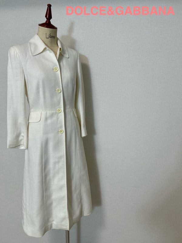 T0076★14 高級 DOLCE&GABBAN ドルチェ&ガッバーナ ロング ライト コート ジャケット ホワイト ツィード 黒タグ JPタグ 38size