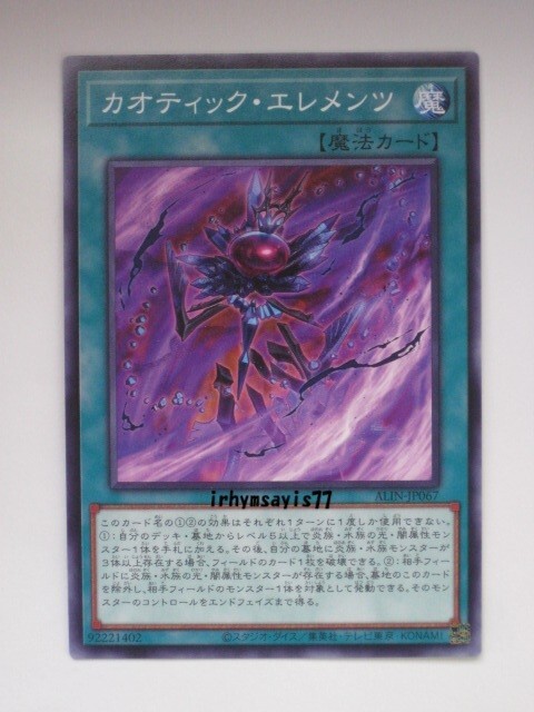 遊戯王 カオティック・エレメンツ ノーマル 魔法 1枚 未使用品 日版 ALIN 数量9 灰滅 ティスティナ K9