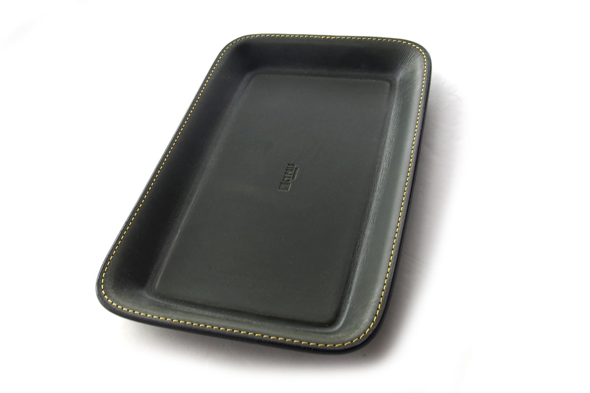 パラフィン加工を施した牛革を使用した、シンプルで実用的なレザートレイ。