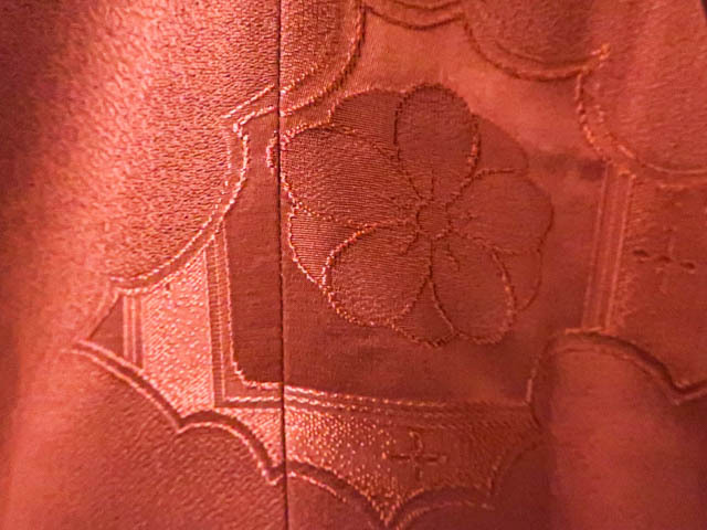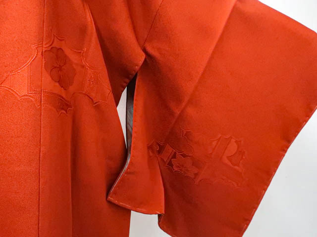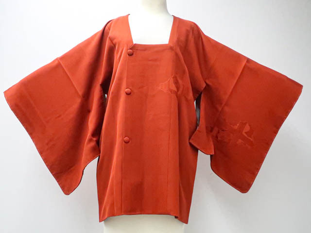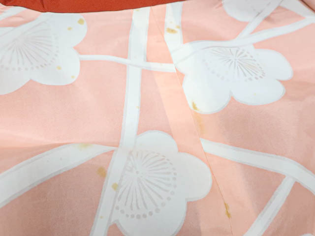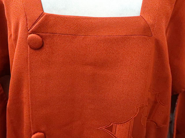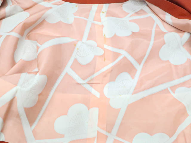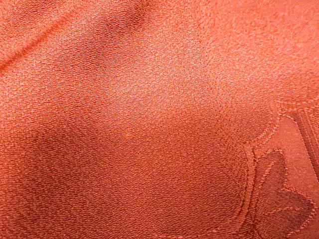 リサイクル商品のため、羽裏にしみがございます。 左後身に小さな色抜けがございますが着用可能なお品です。 地色は 橙です。 1枚目の画像が近いお色かと思われます。 素材は正絹です。 |