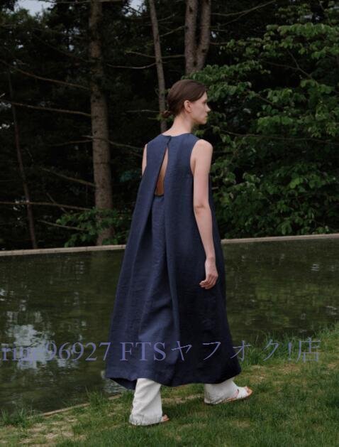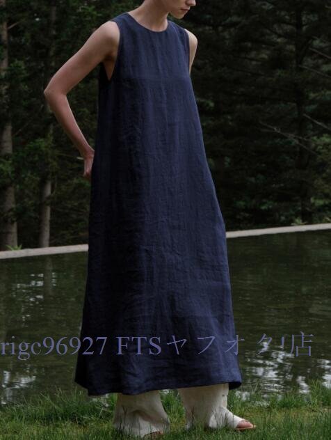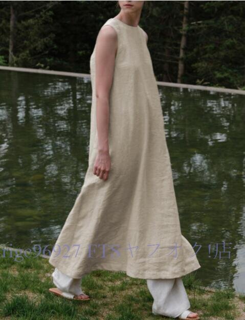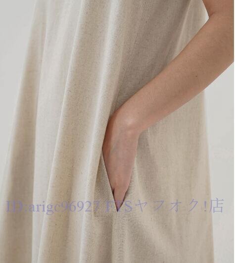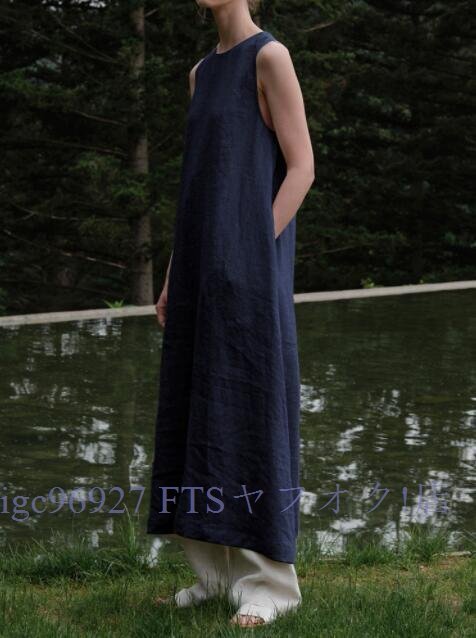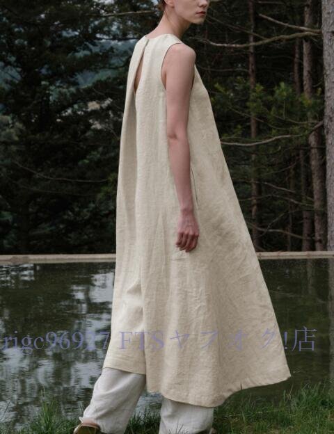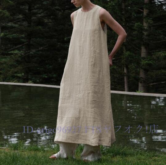 ★新品大人可愛い ノースリーブ リネンワンピース レディース ゆったり 体型カバー 綿麻 無地 おしゃれ 後ろ姿が女性らしい 2色