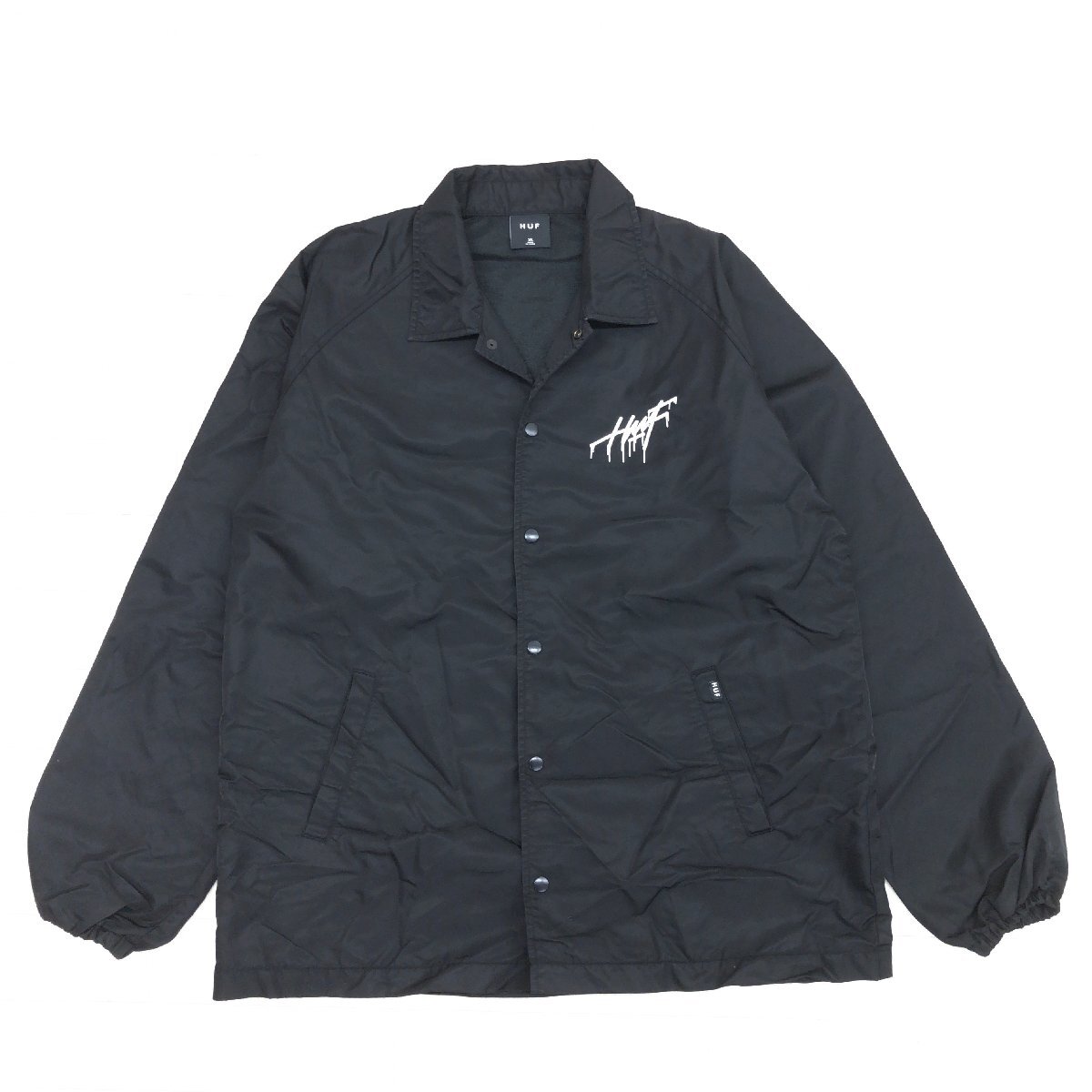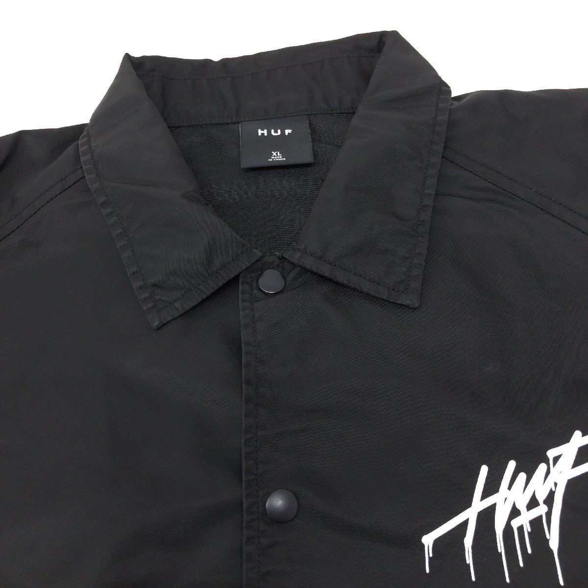 ●HUF ハフ ペイントロゴ ナイロン コーチジャケット XL 黒 ブラック 羽織り ストリート スケボー 特大 大きいサイズ 2L LL メンズ 紳士