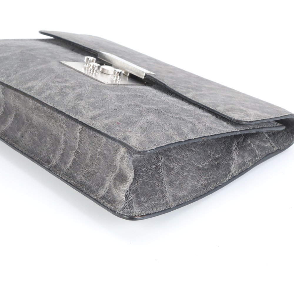 1円■美品■希少■ヴァレクストラ■エレファント レザー クラッチ バッグ ハンド セカンド ポーチ シルバー 金具 レディース EEE CT17-10