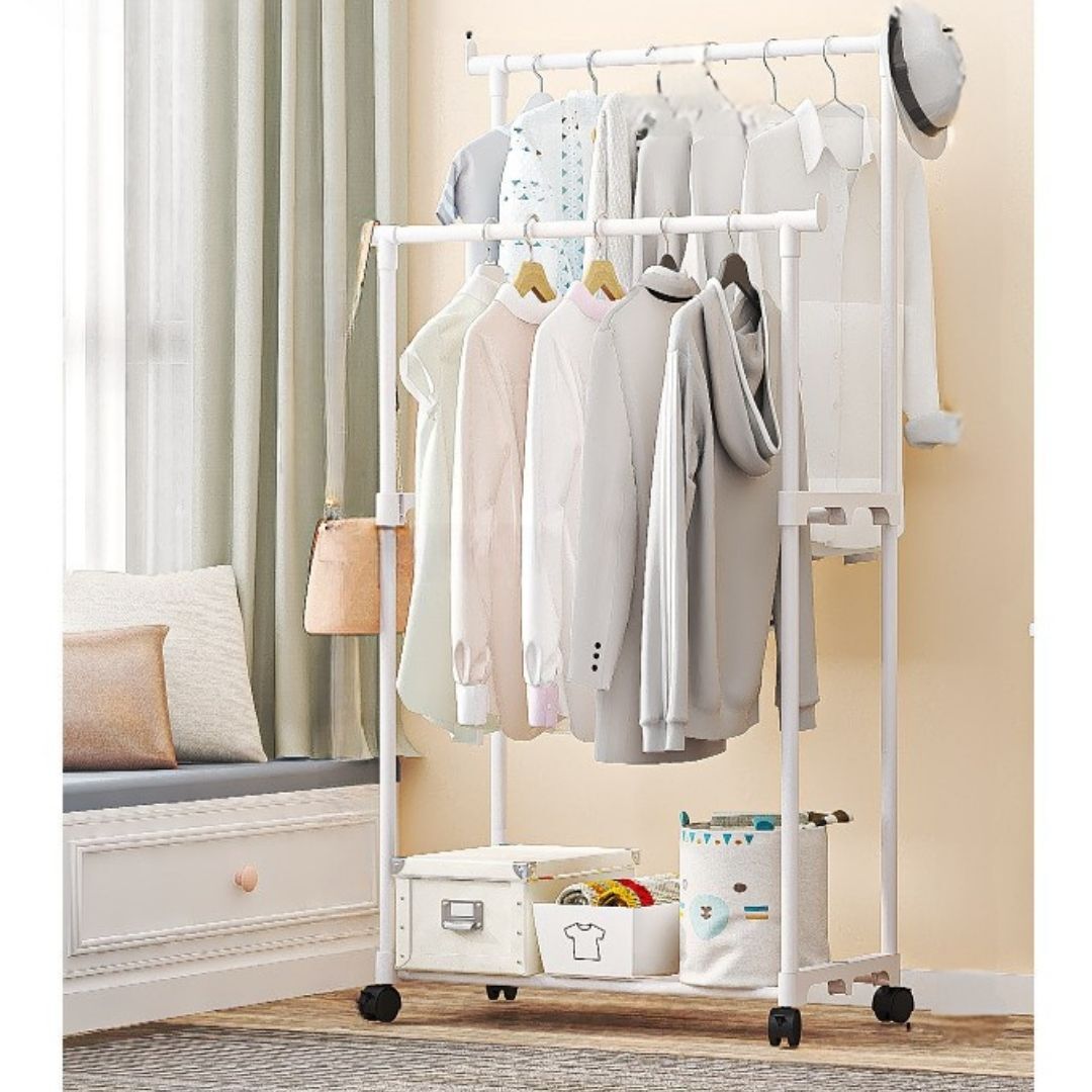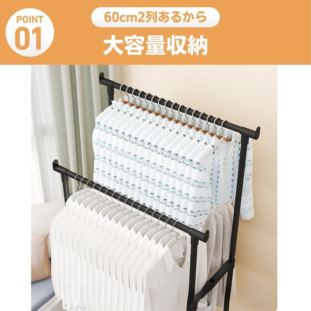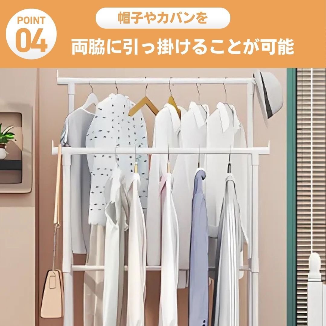 ダブルハンガーラック 衣装ラック 洋服掛け 2列 組み立て 大容量 ホワイト 白 収納力抜群 室内干し 物干し 新居 引越し スペース |