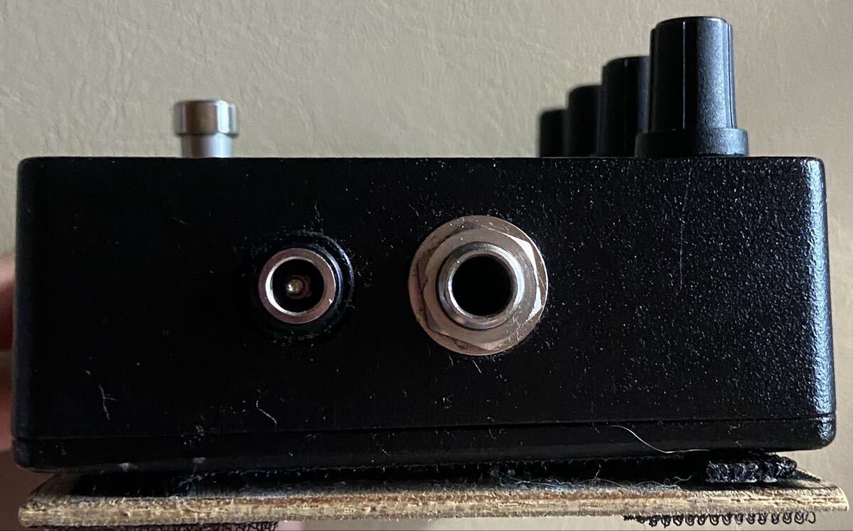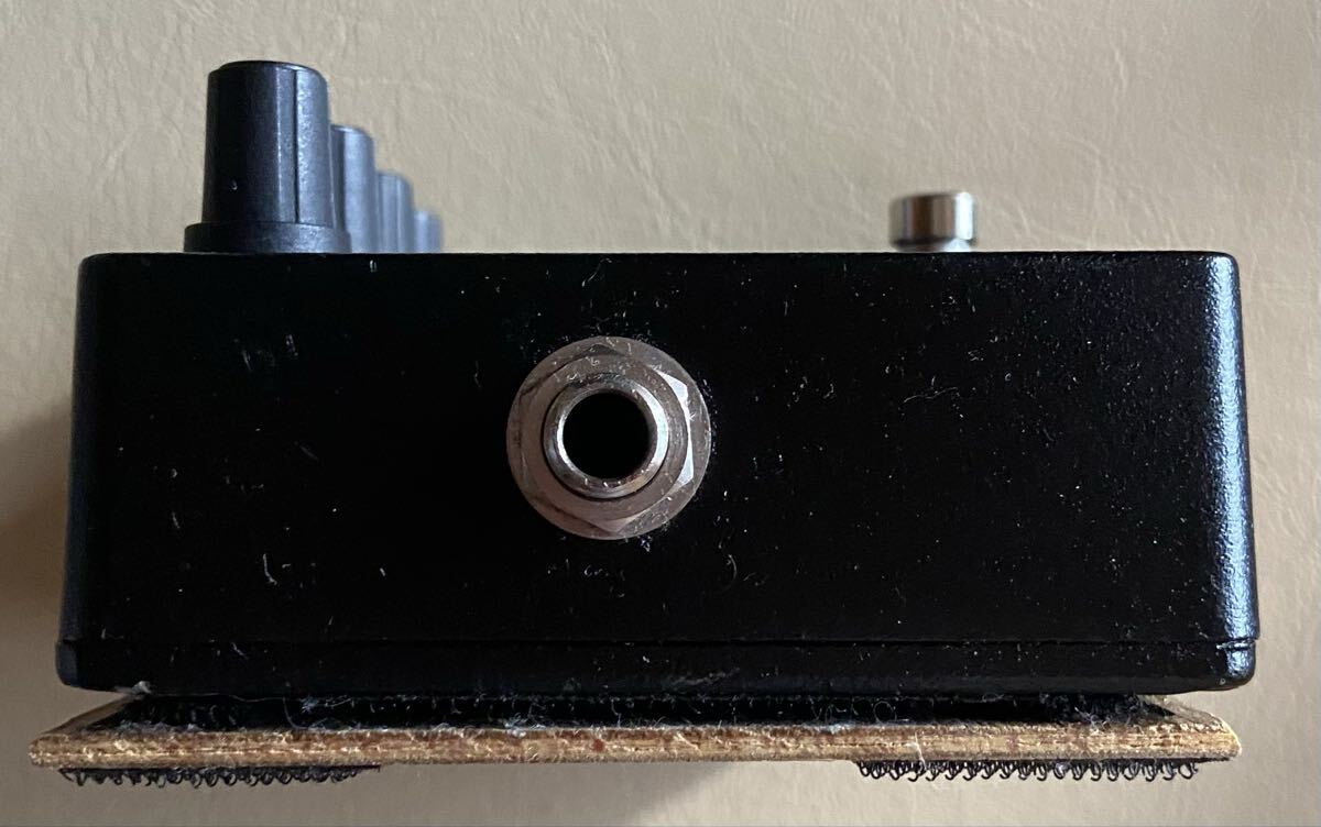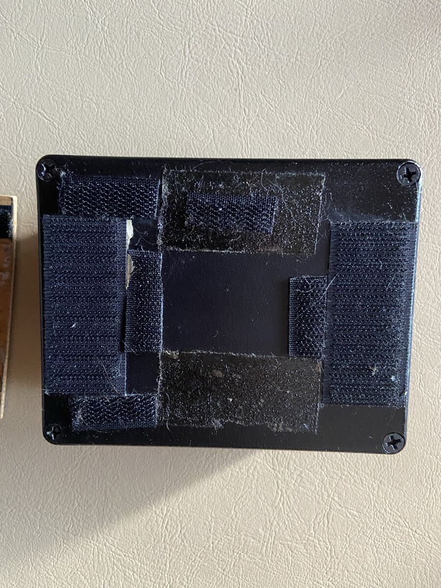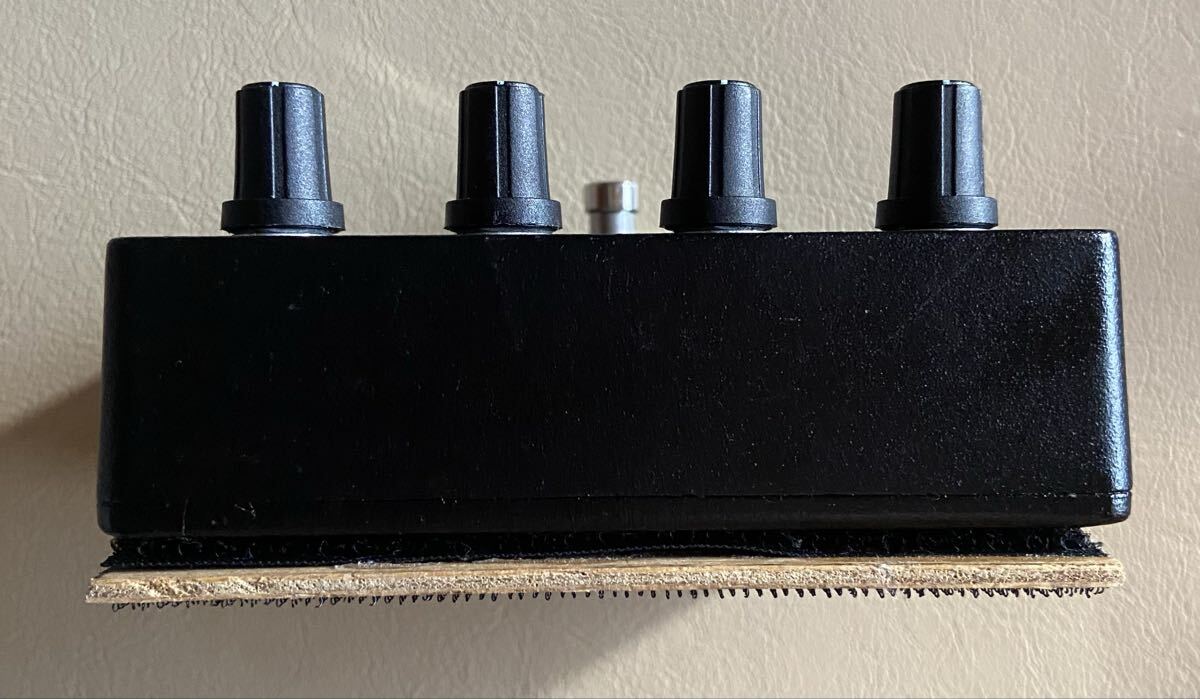 エフェクターボードに頑丈に貼り付け出来るように、サイズに合わせて板を作り、マジックテープで止められる仕様になっています。少々汚く見えますが、現場仕様という事でご理解いただきますようお願いいたします。