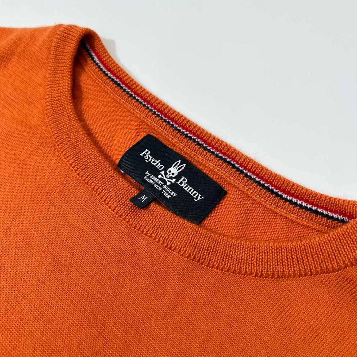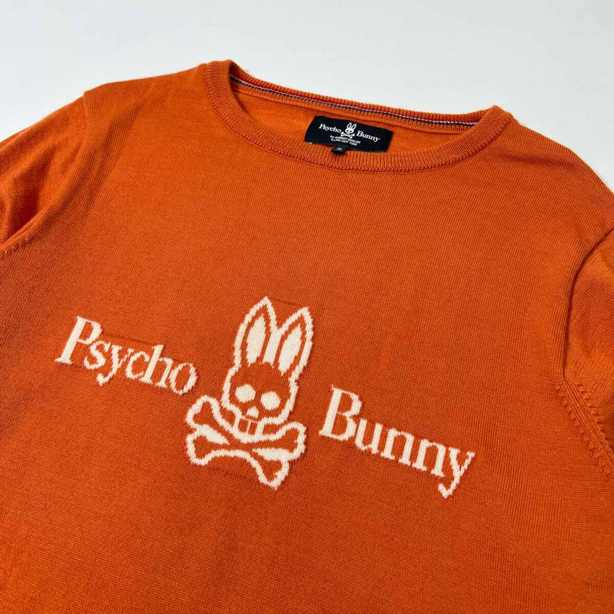 商品名 | Psycho Bunny サイコバニー BIGロゴ入り ハイゲージ ウールニットセーター M /オレンジ/ジョイックス/日本製 |
