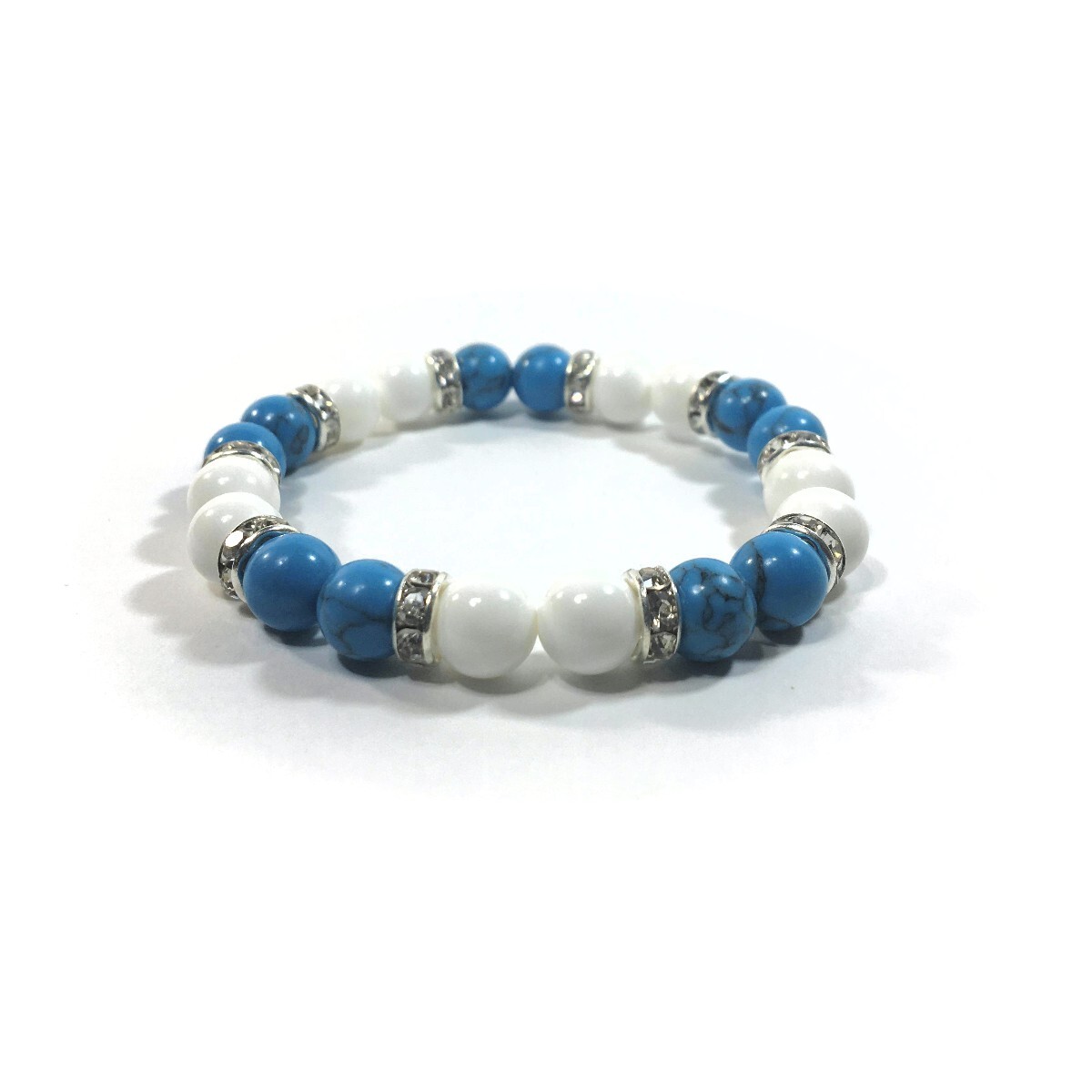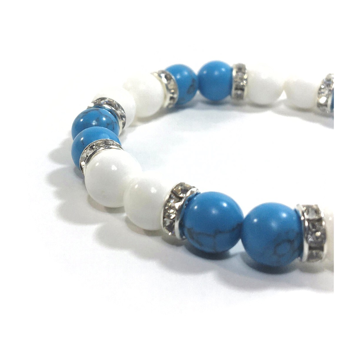 ターコイズ&ホワイトオニキス パワーストーン ブレスレット シルバー 8mm /開運 浄化 魔除け お守り 成功 繁栄 効果 レディース 通販