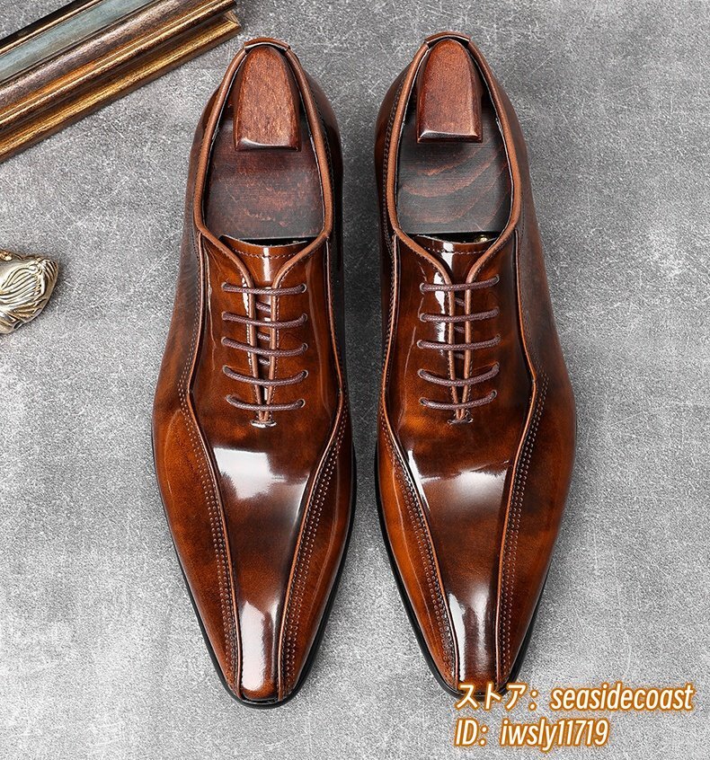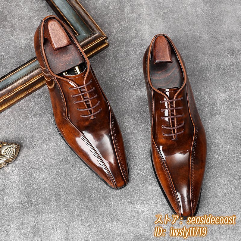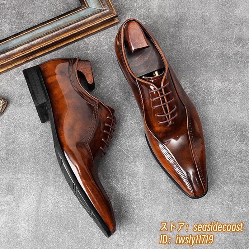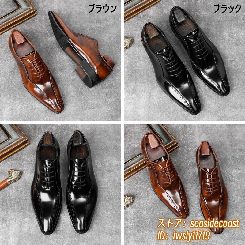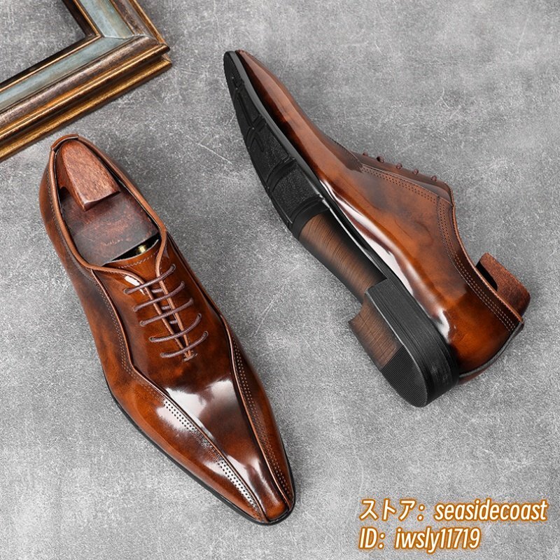 極美品★定価11万超 新品 ビジネスシューズ メンズ 本革レザーシューズ 職人手塗り上げ 革靴 最高級 牛革 紳士用 結婚式 ブラウン 26.0cm