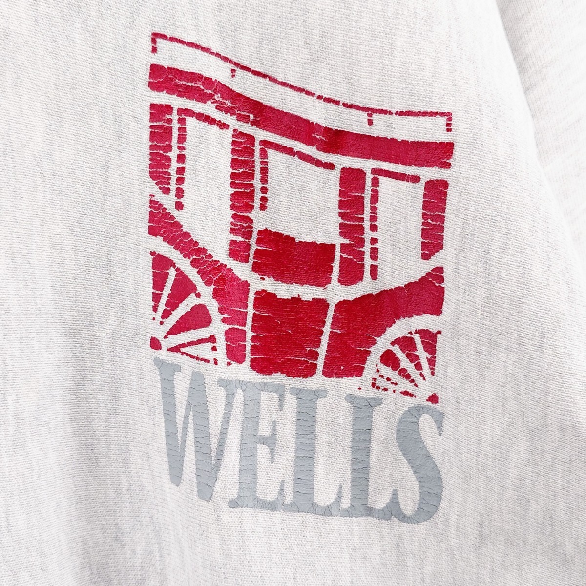 アメリカの金融機関、ウェルズ・ファーゴの両面プリントのリバースウィーブになります。袖のリブの一部に僅かなダメージ、首のリブにもダメージが見受けられましたので写真でご確認をお願いいたします。目立つ汚れやシミは見受けられませんでした。古着にご理解いただける方のみご入札下さいませ。