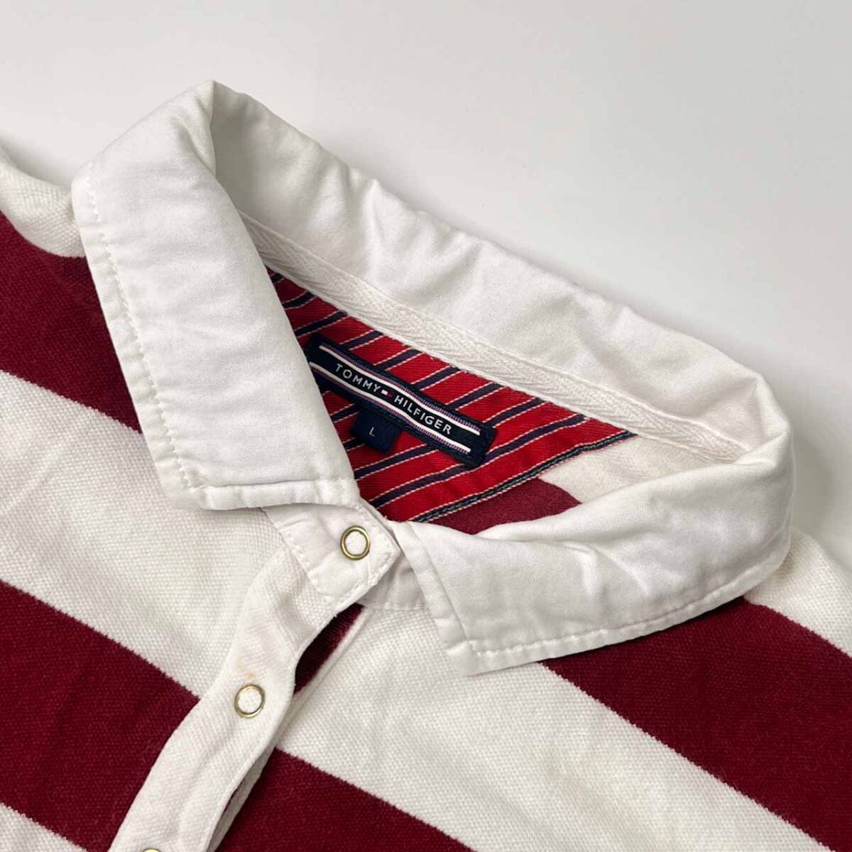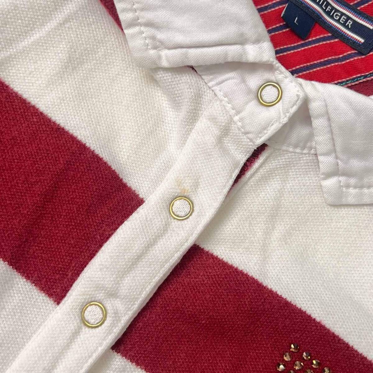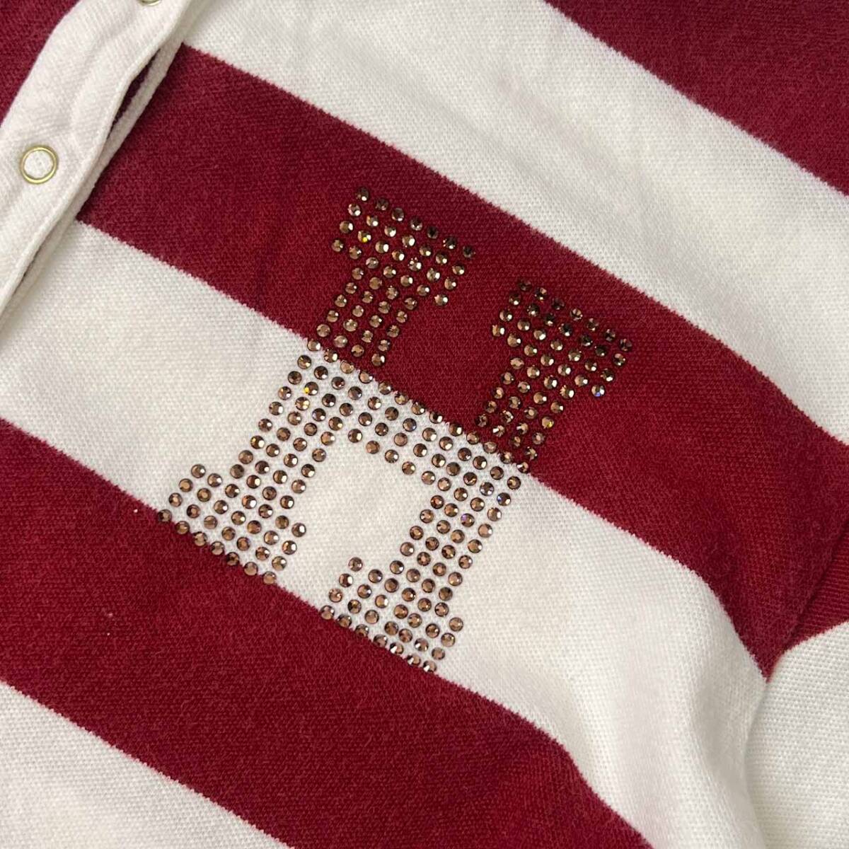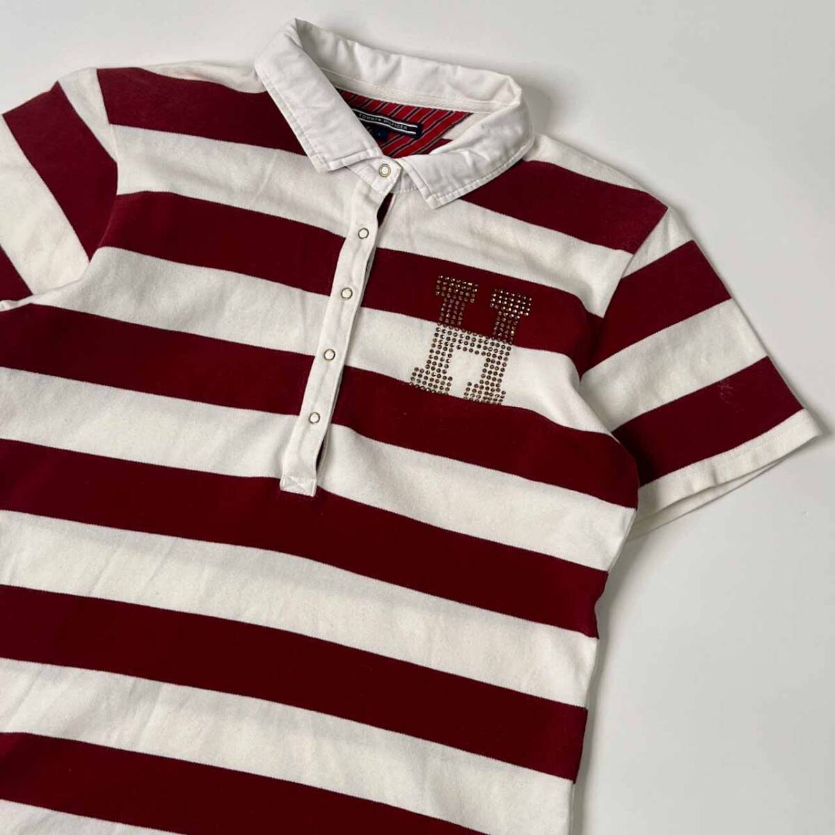 | 商品名 | TOMMY HILFIGER トミーヒルフィガー ボーダー ラインストーン 半袖 ポロシャツ L/ボルドー×ホワイト レディース |