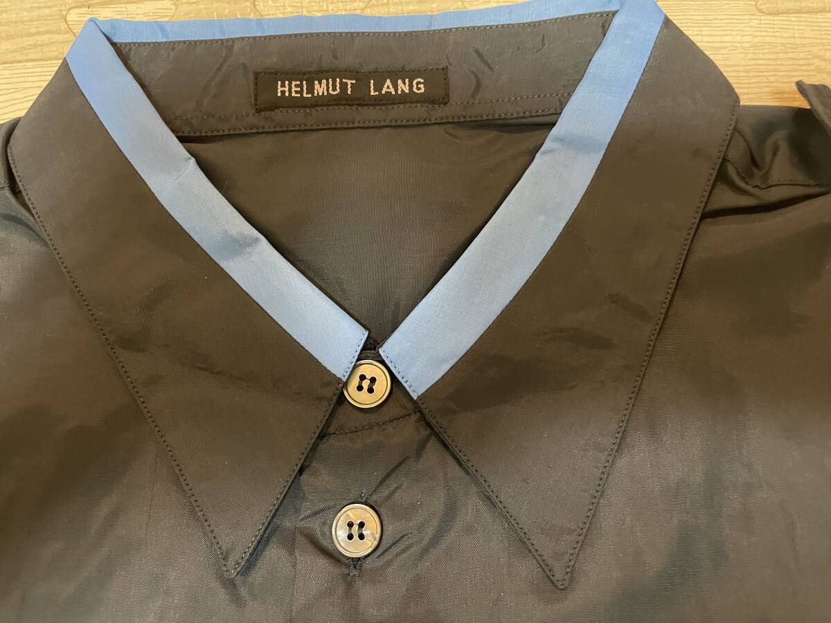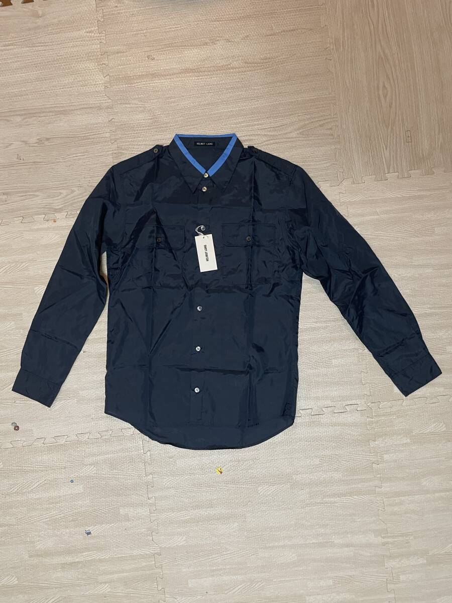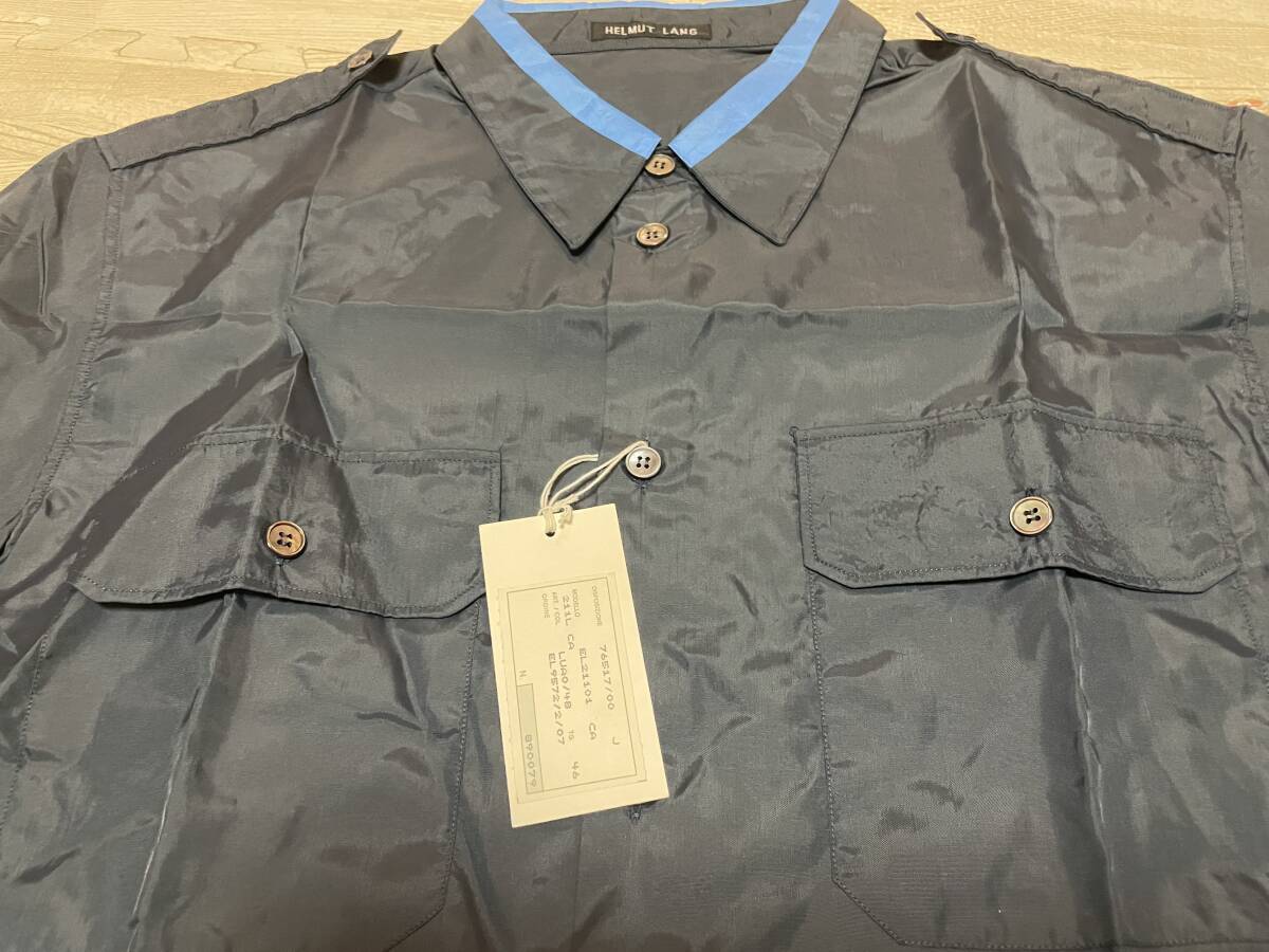 ヘルムートラング本人期 タグ付き デッドストック ライン入りミリタリーシャツ ナイロン ネイビー サイズ46