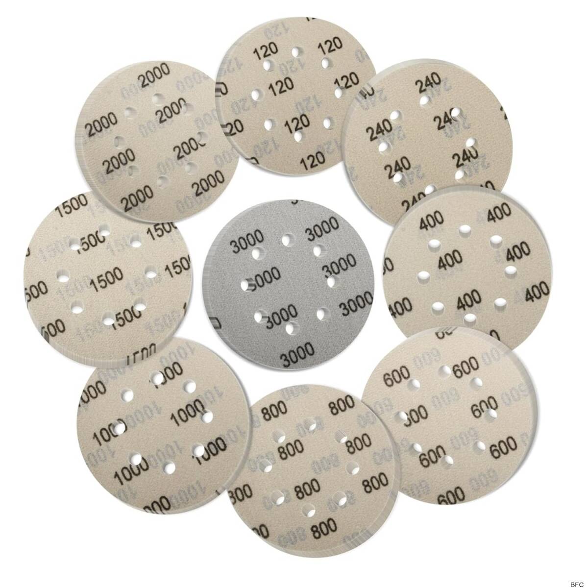 耐水ペーパー 125mm 90枚 10種類 8穴 サンディング マジック式 微細 オービル 丸型 ポリッシャー 仕上げ 鏡面磨き 金属 研磨用 送料無料