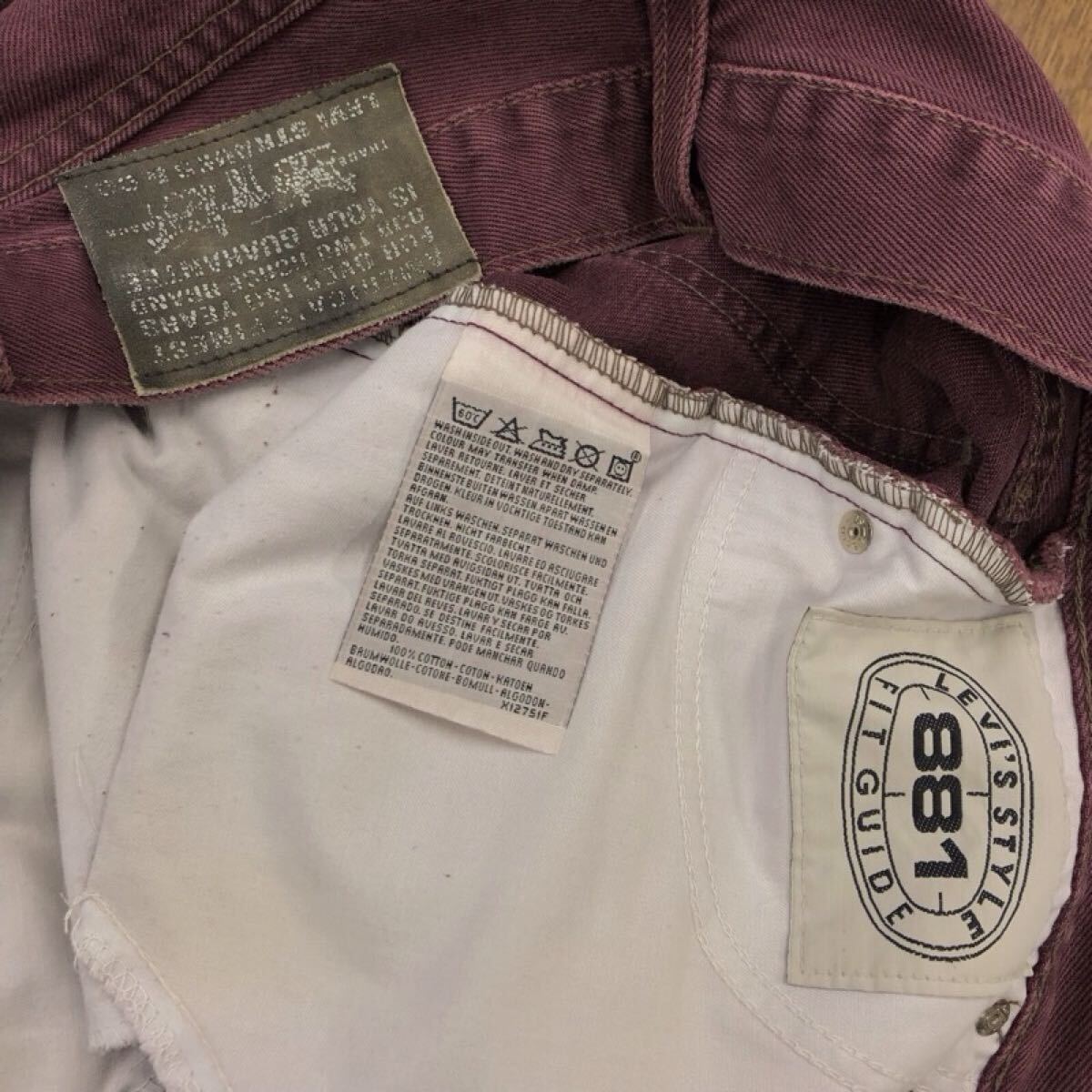 【GI500】UK製 EURO Levi's 881 W14 L30 カラーパンツ レッドパープル ブランド古着 ユーロリーバイス881 送料無料