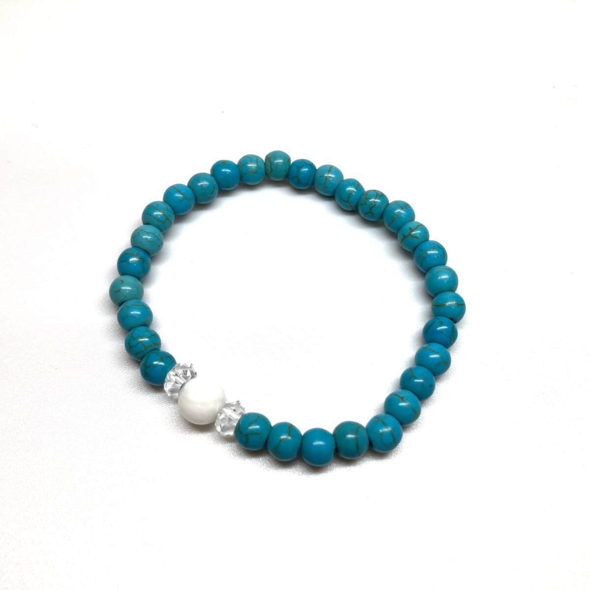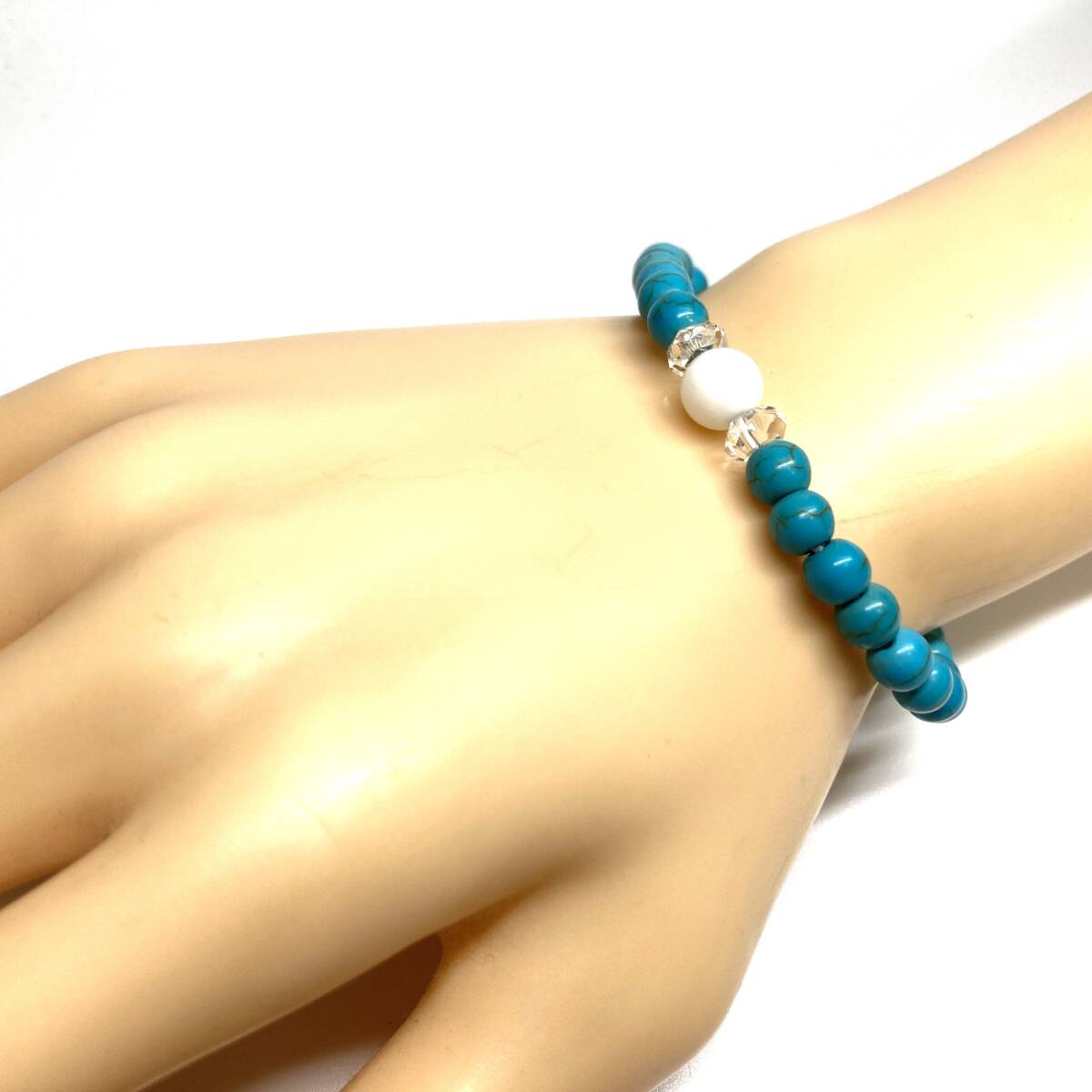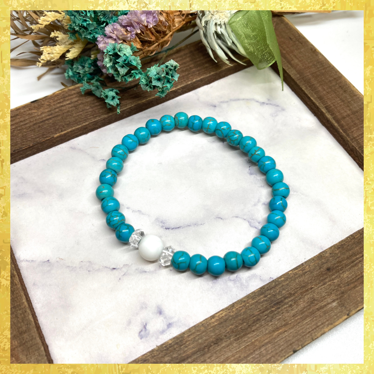【SALE・送料無料・即決】ホワイトオニキス&ターコイズ ブレスレット パワーストーン 8mm×6mm / メンズ レディース 男性 女性 お守り