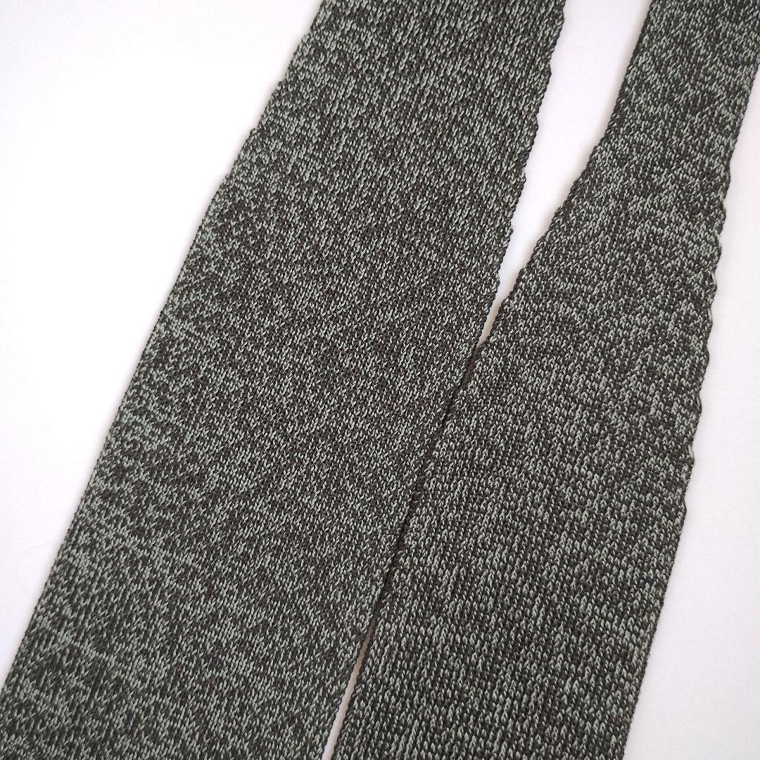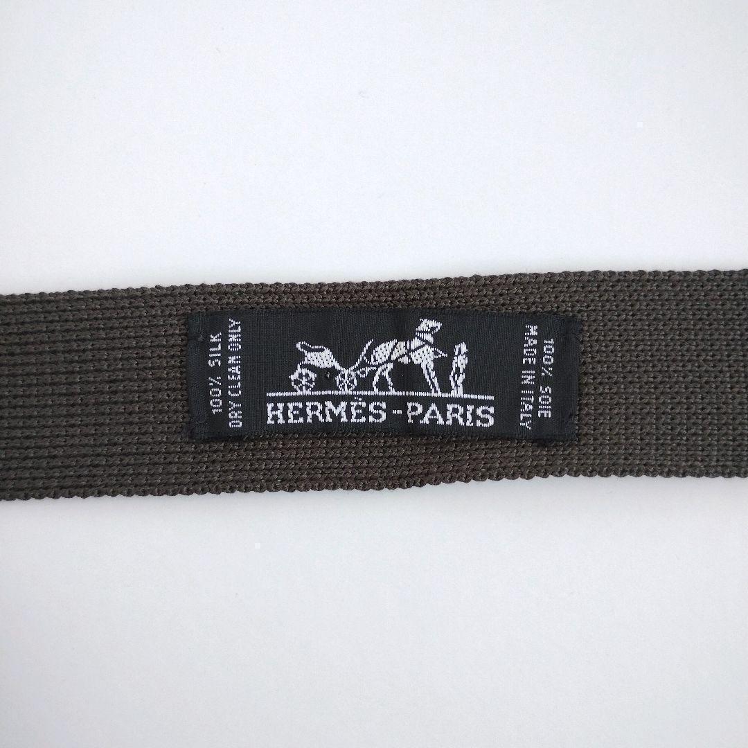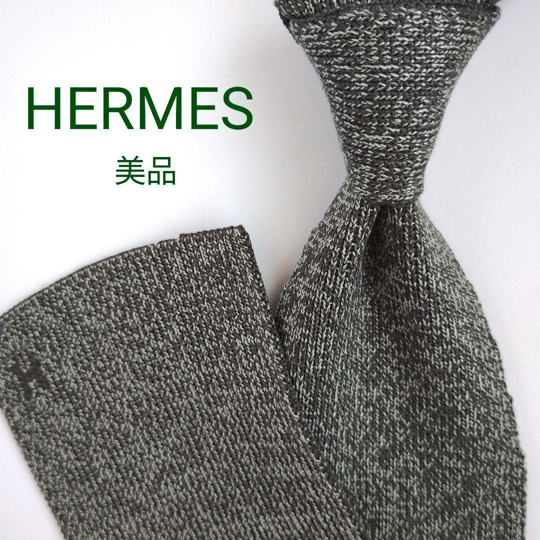 【美品】エルメス ニットタイ グリーン・グレー系 無地 ソリッド H柄 高級