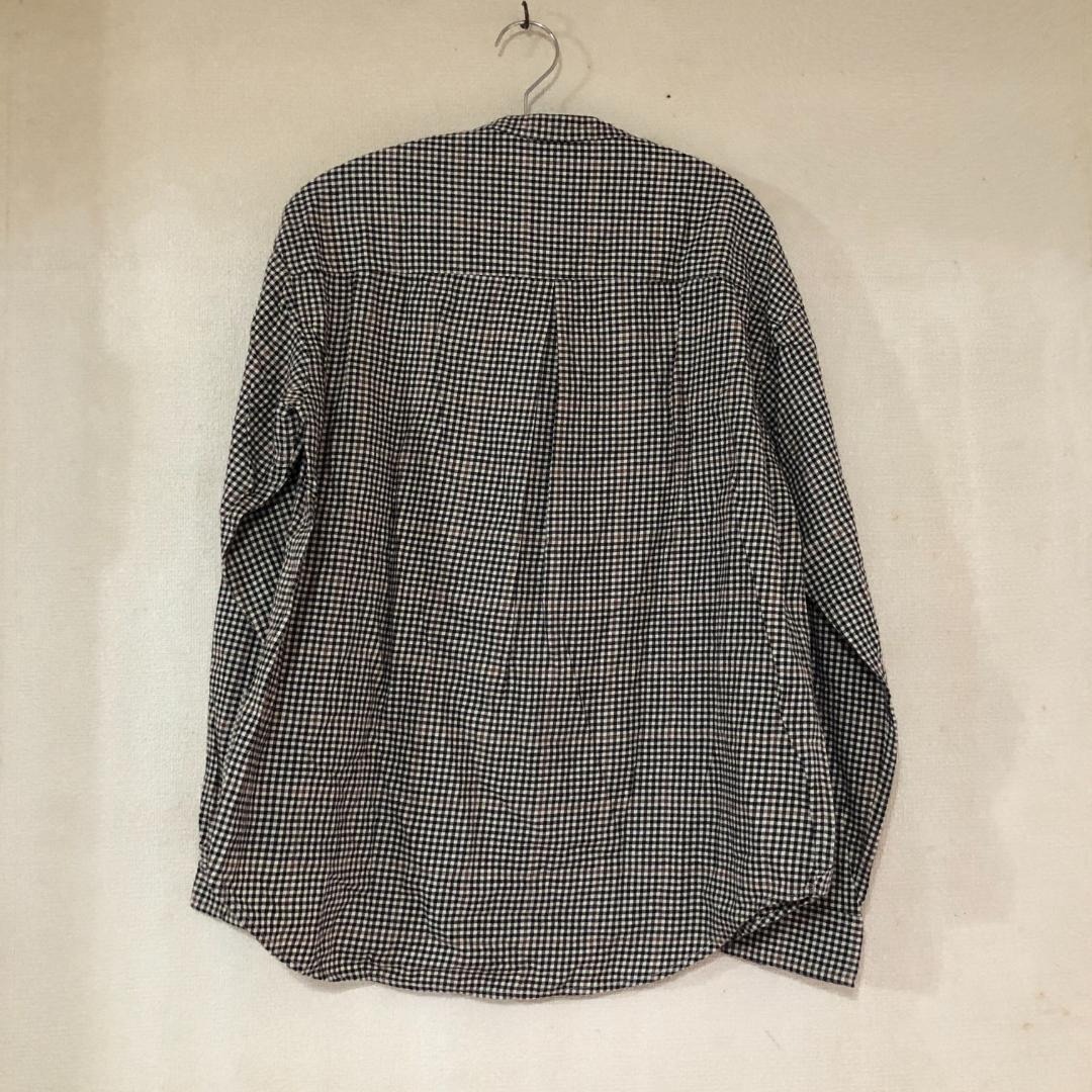 人気 バンドカラーシャツ ギンガムチェック S ノーカラー 古着 B2003