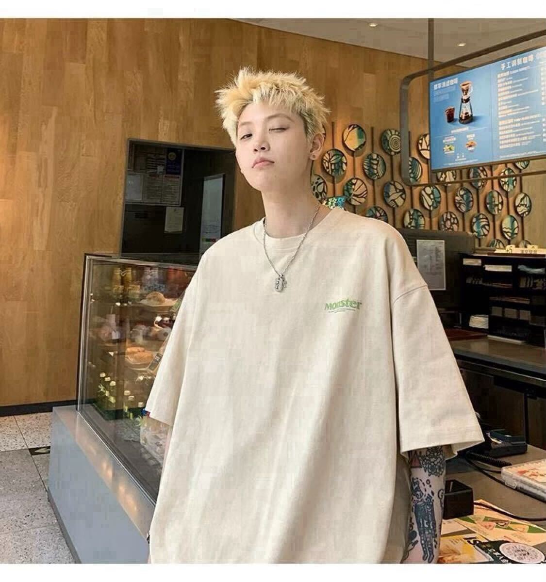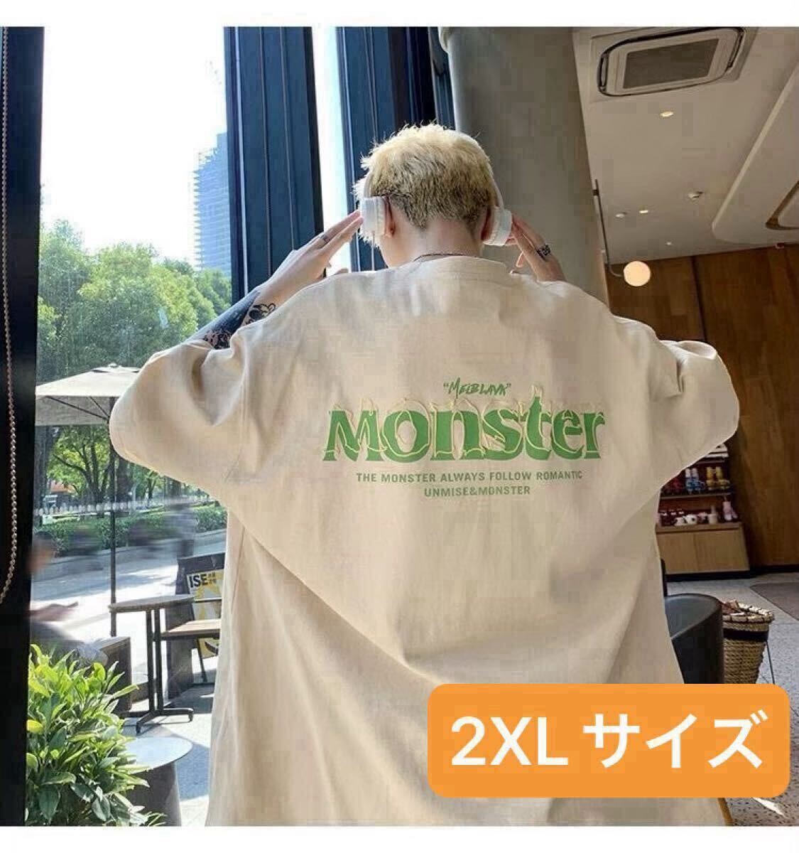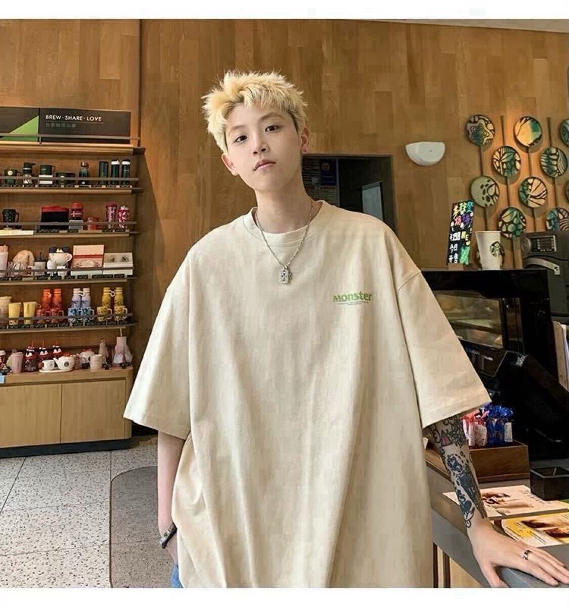 メンズ Tシャツ 半袖 夏服 オーバーサイズ バックプリント ストリート 2XL ベージュ