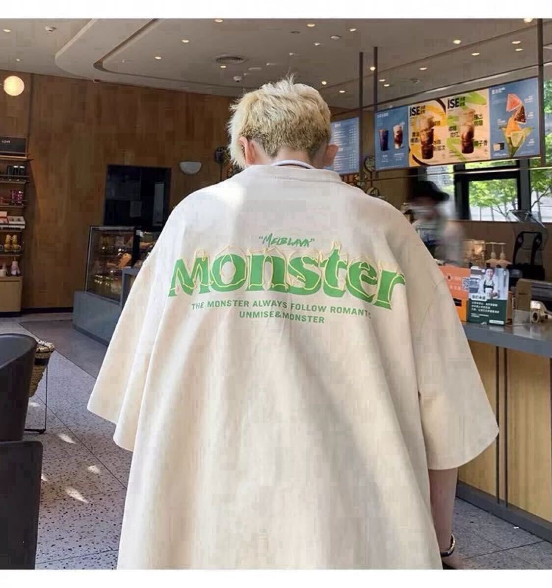 背中にプリントされた「Monster」のロゴが印象的で、