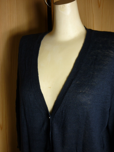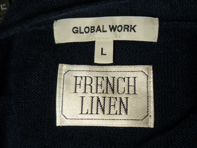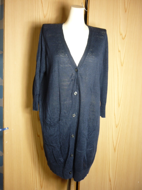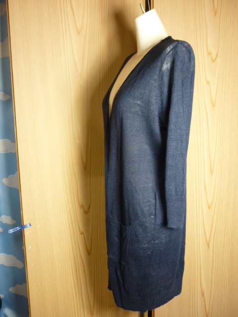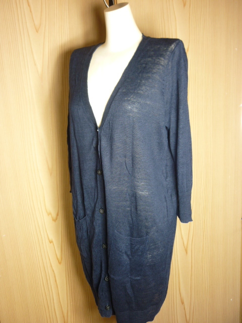 C'38★美品★GLOBAL WORK(グローバルワーク)・サイズ L【七分~八分袖・麻100%・濃紺・ロングニット・カ-ディガン】★商品詳細は記載文を