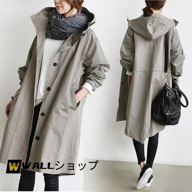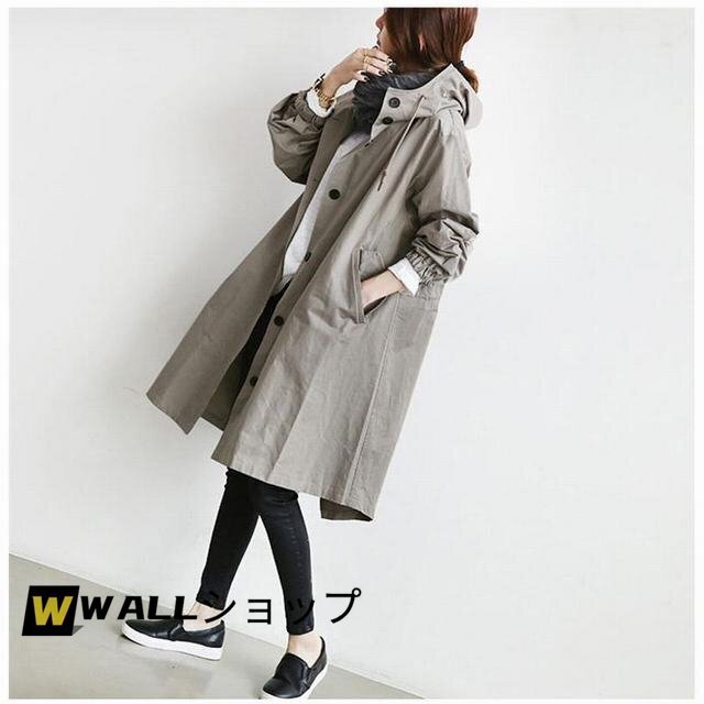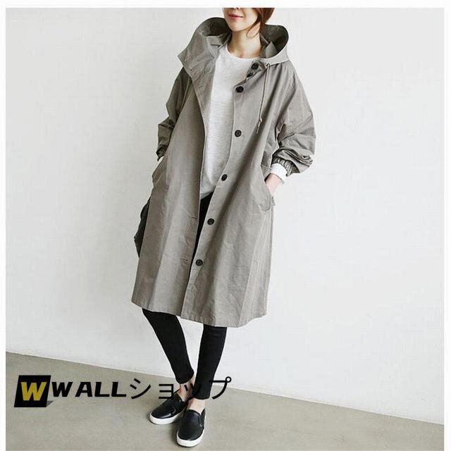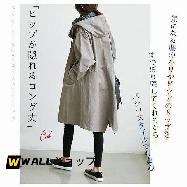 ライトコート レディース 秋 ジャケット ミリタリー ロング 防寒 フード 長袖 スプリング トレンチコートA02 2XL