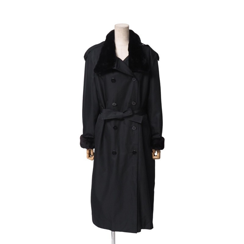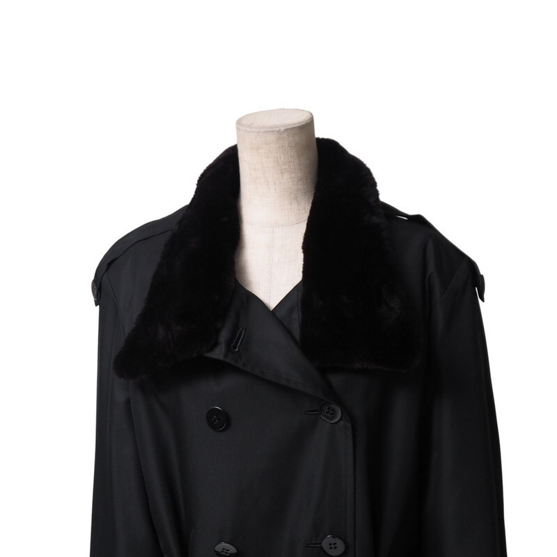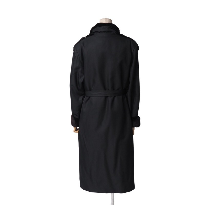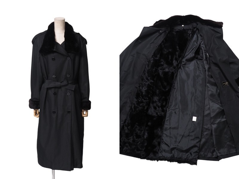 GR9764△Kanebo Silk/カネボウシルク 総シルク × ラムファーライナー 衿/袖:リアルファー 本毛皮 ベルテッドコート ブラック系 L | |||