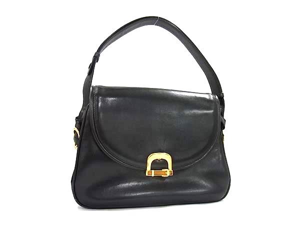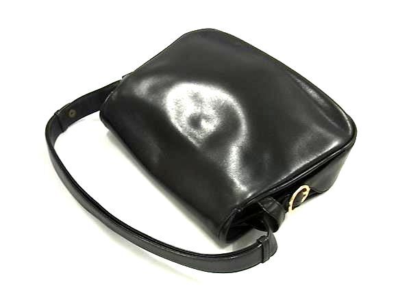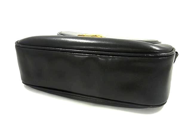 1円 GUCCI グッチ オールドグッチ ヴィンテージ レザー ショルダーバッグ 肩掛け レディース ブラック系 FP7424