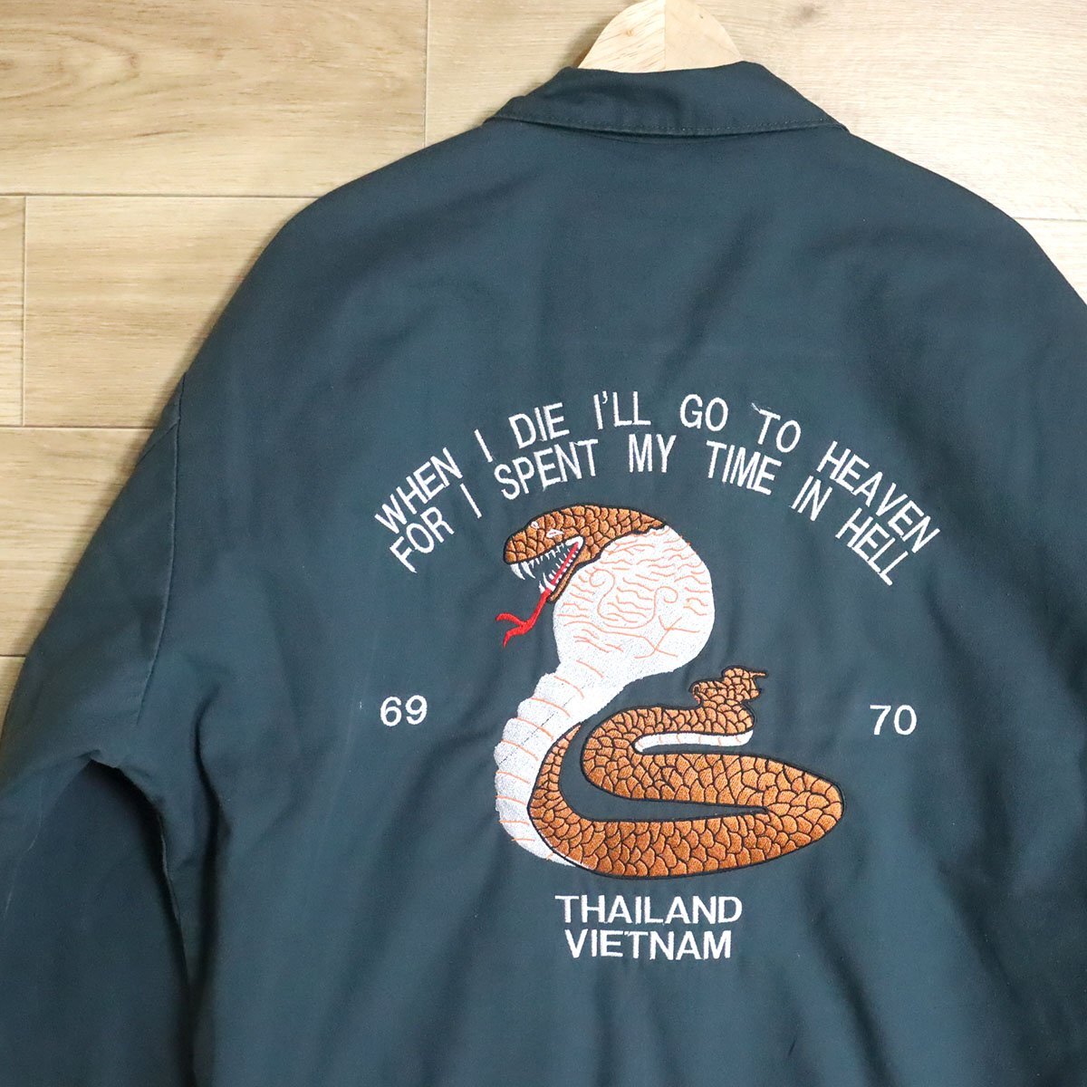 $1T/D9.25-3 タイランド スーベニア サンプリング RED KAP レッドキャップ ワークジャケット バック刺繍 コブラ ヘビ L