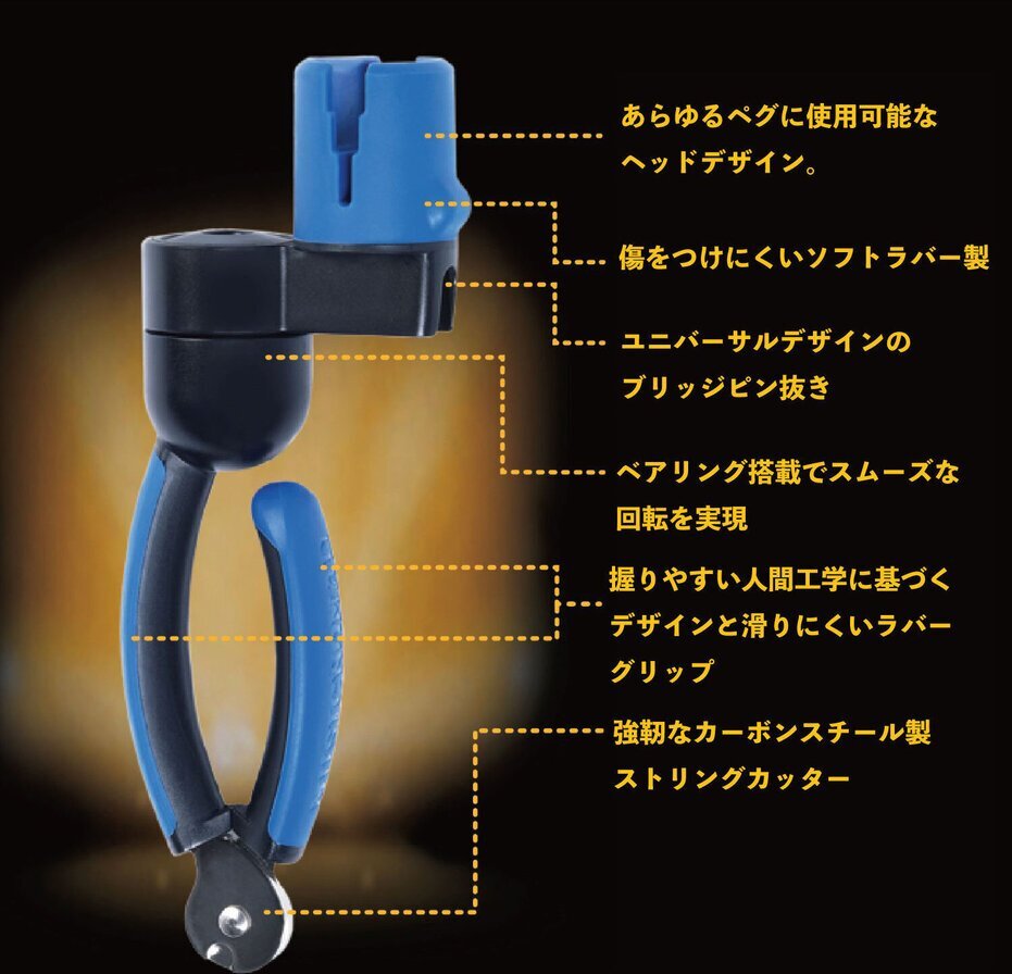 ◆トリングワインダー、カッター、ブリッジピン抜きをオールインワンにした弦交換ツール