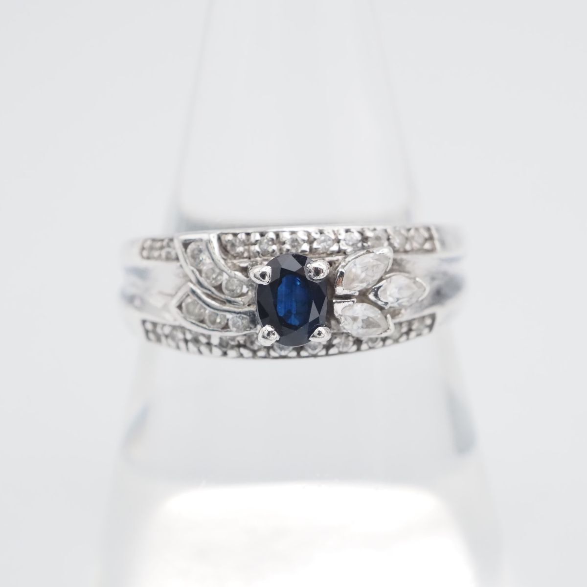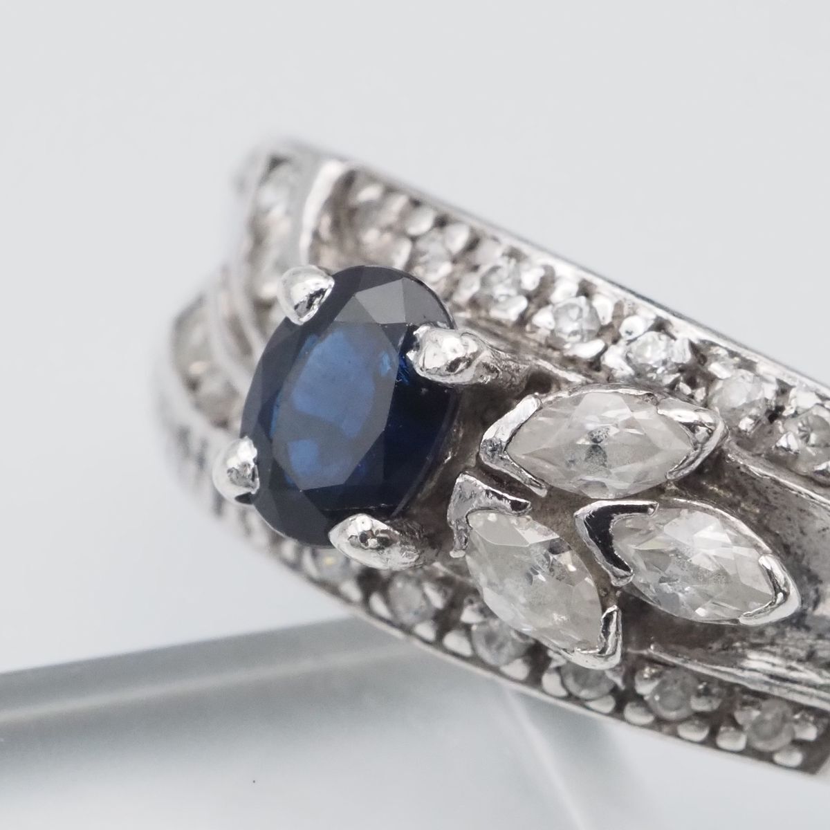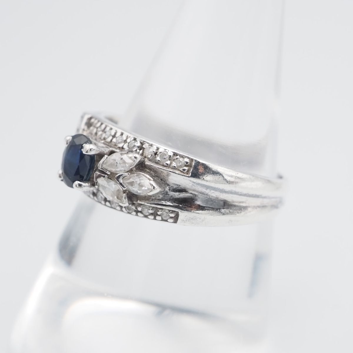 F892 サファイア? ブルースピネル? 925刻印 リング ラインストーン デザイン シルバー 指輪 16号