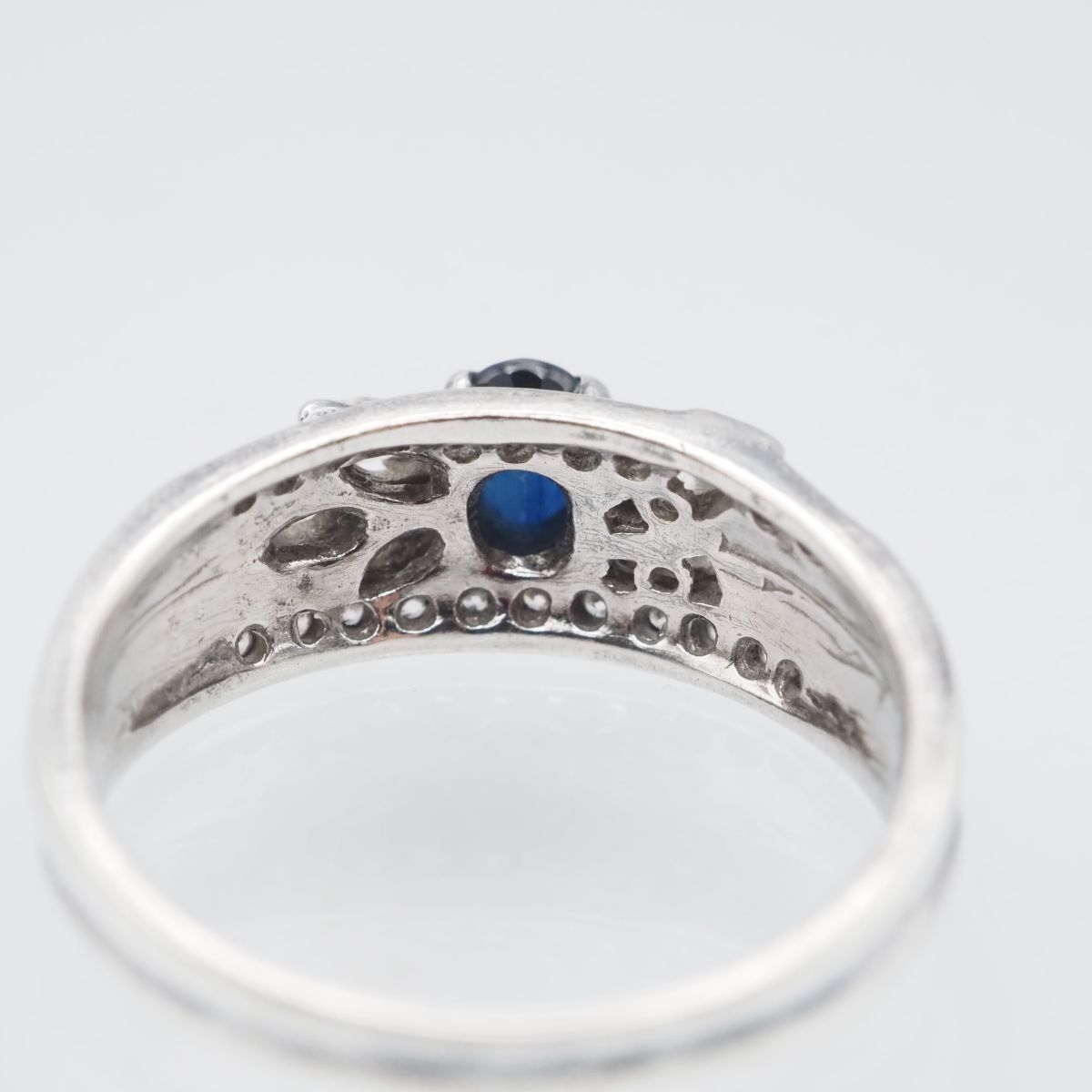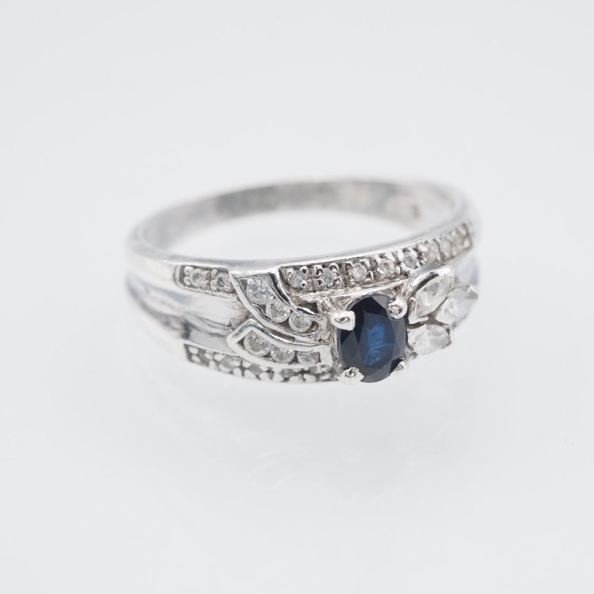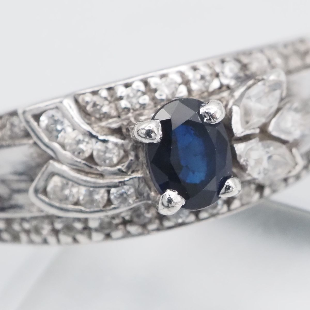 F892 サファイア? ブルースピネル? 925刻印 リング ラインストーン デザイン シルバー 指輪 16号