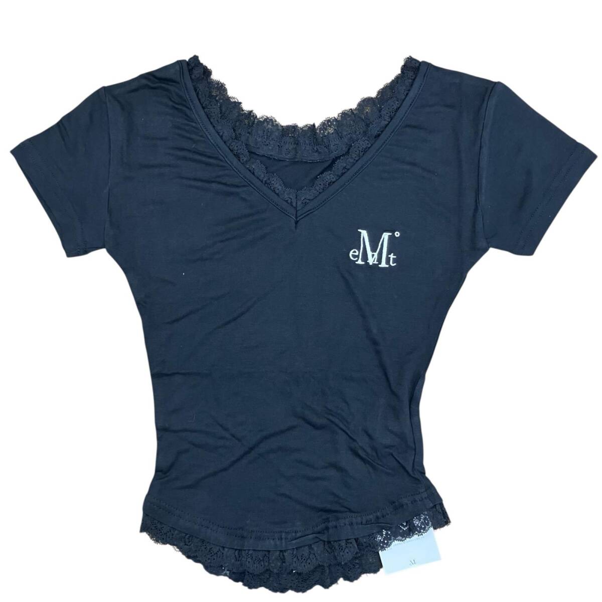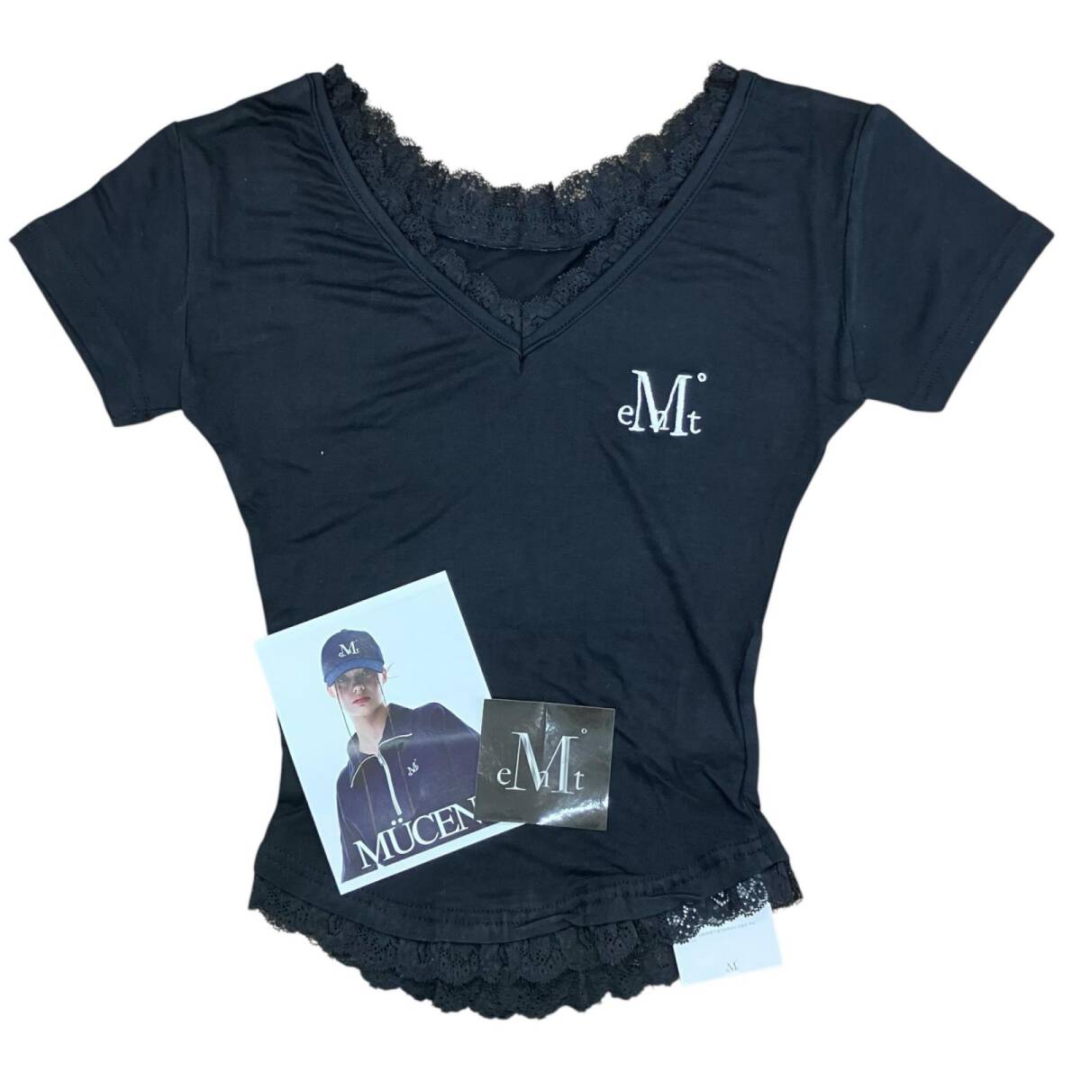 SG00001 新品未使用 MUCENT Vネック トップス FREE ブラック サニアレース ポリエステル レディース