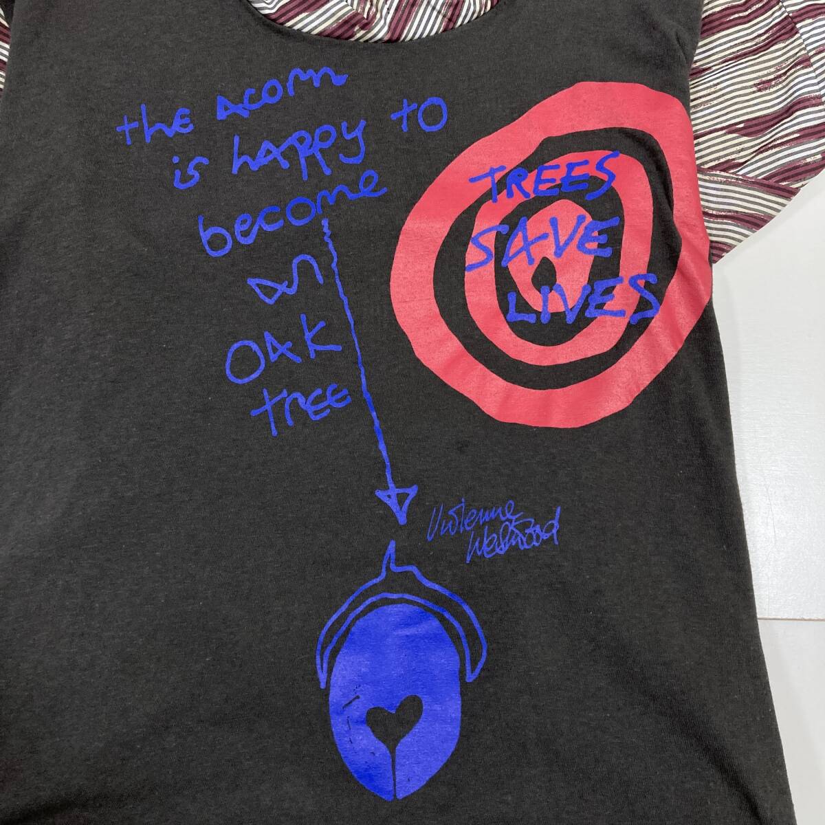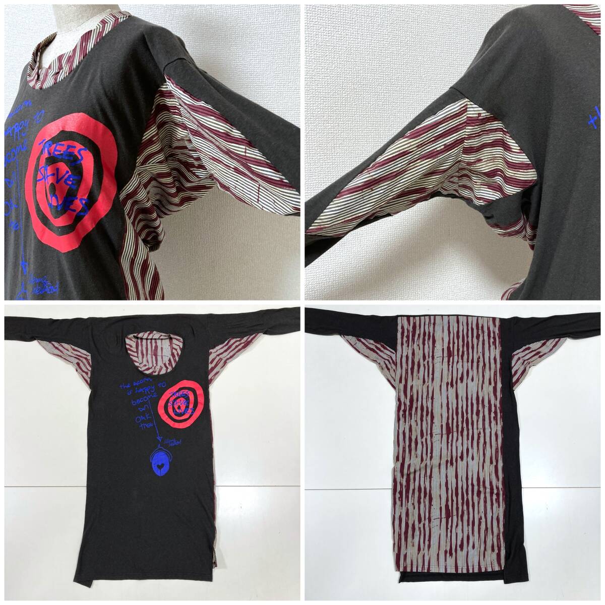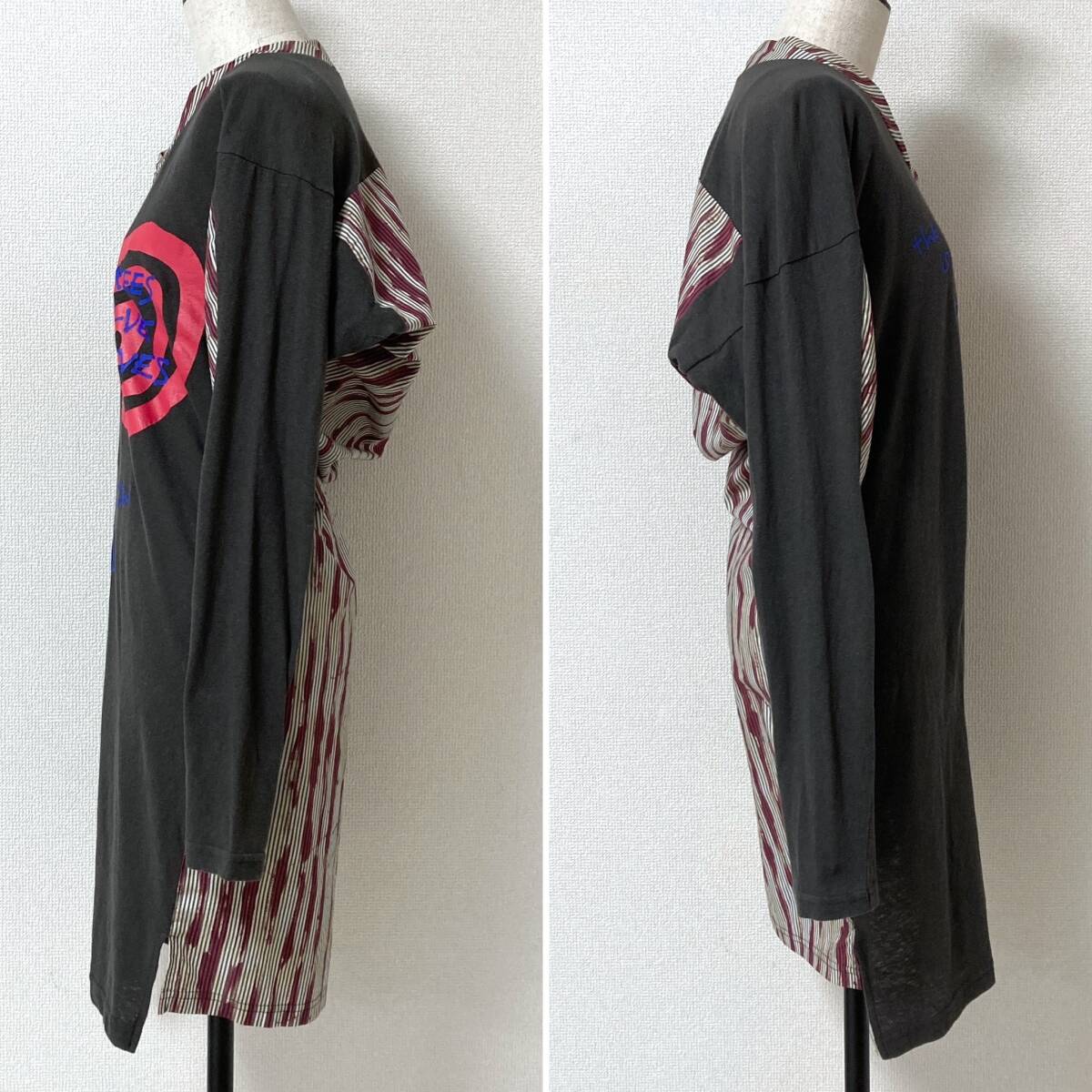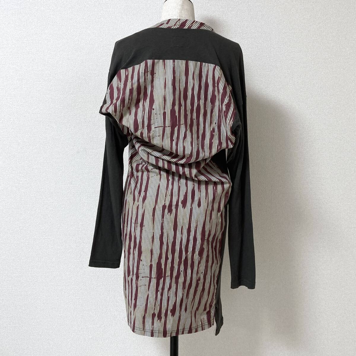 vivienne westwood ANGLOMANIA カシミヤ混 変形 切替 プリント ストライプ 長袖 カットソー ワンピース アングロマニア archive 5080506