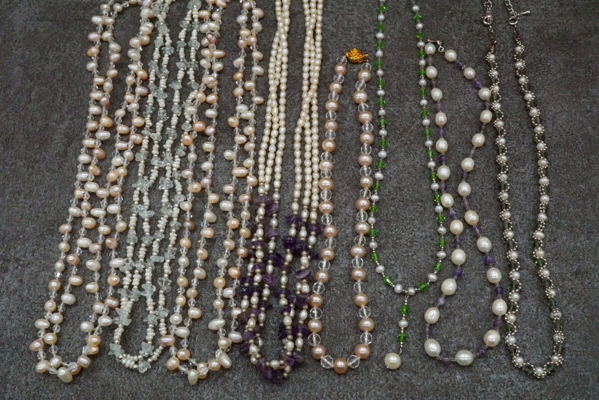 B199 本真珠 淡水パール ネックレス 8点セット ヴィンテージ アクセサリー 大量 まとめて おまとめ まとめ売り ペンダント SILVER含む