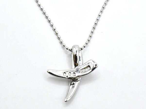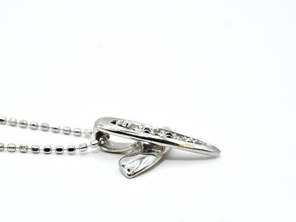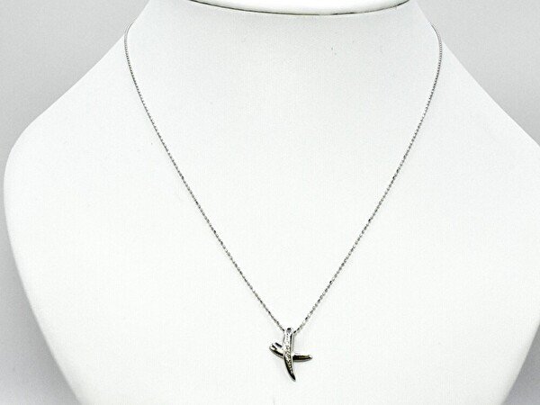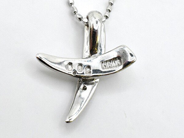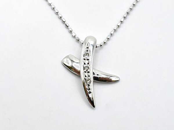 ネックレス ペンダント 首飾り K18 WG 金 宝石 0.02ct クロス カットボールチェーン ジュエリー/ホワイトゴールド×クリア/1円スタート/AY