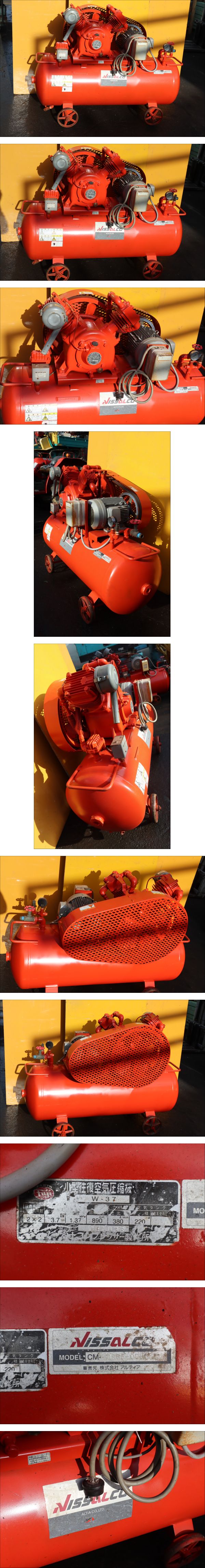 | EARTH FUJI エアーコンプレッサーNISSALCO OW-37 3.7kW(5馬力)三相200V タンク220L 整備点検塗装済 動作確認済 即決価格 | ||