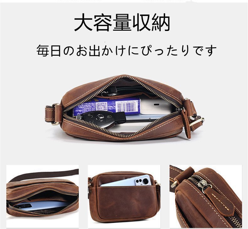 メッセンジャーバッグ メンズ ショルダーバッグ レザー カバン 斜めがけ バッグ 牛革 通勤 通学 コーヒー