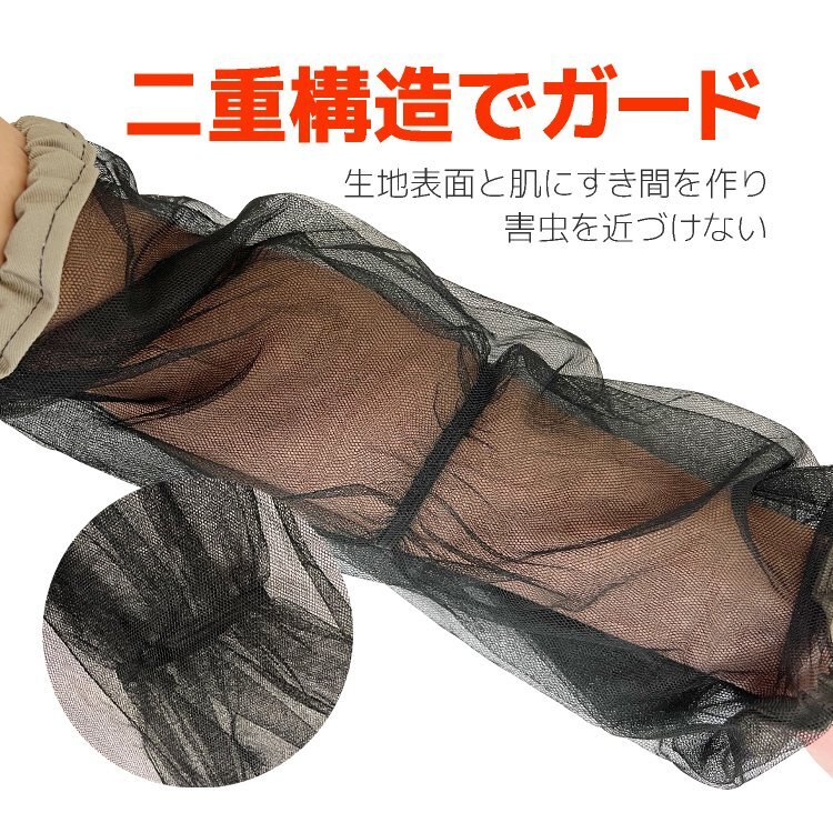 ◆虫除けアームカバー 2枚セット 虫よけアームネット 男女兼用 丸洗いOK 二重構造ネット 高通気メッシュ素材 ガーデニング/農作業/屋外作業/アウトドアの虫刺され対策に MYAC43