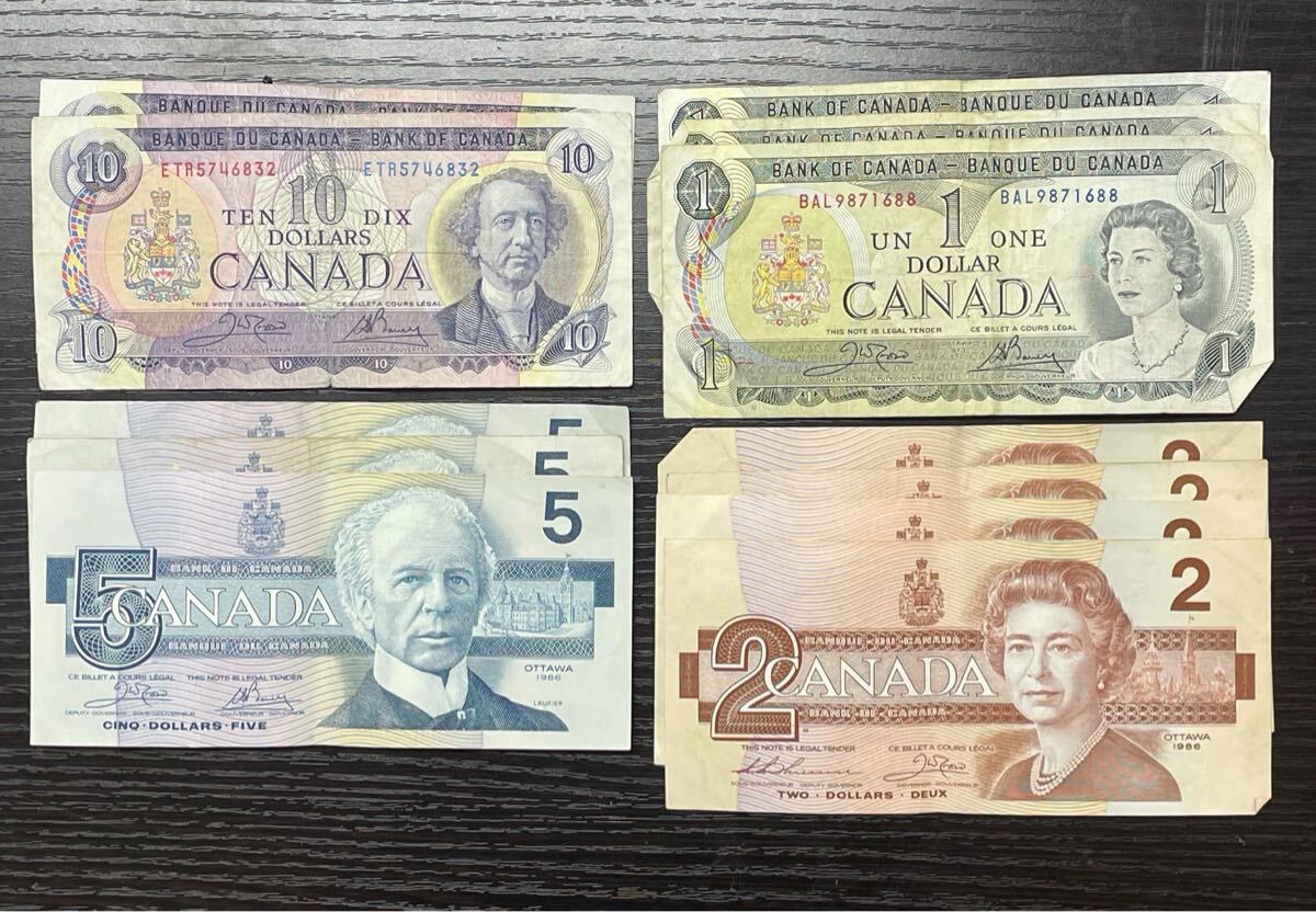 【9W14】1円スタート カナダ ドル まとめて 12枚 額面合計 46ドル 外国 海外紙幣 外国紙幣 旧紙幣 海外札 1ドル 2ドル 5ドル 10ドル